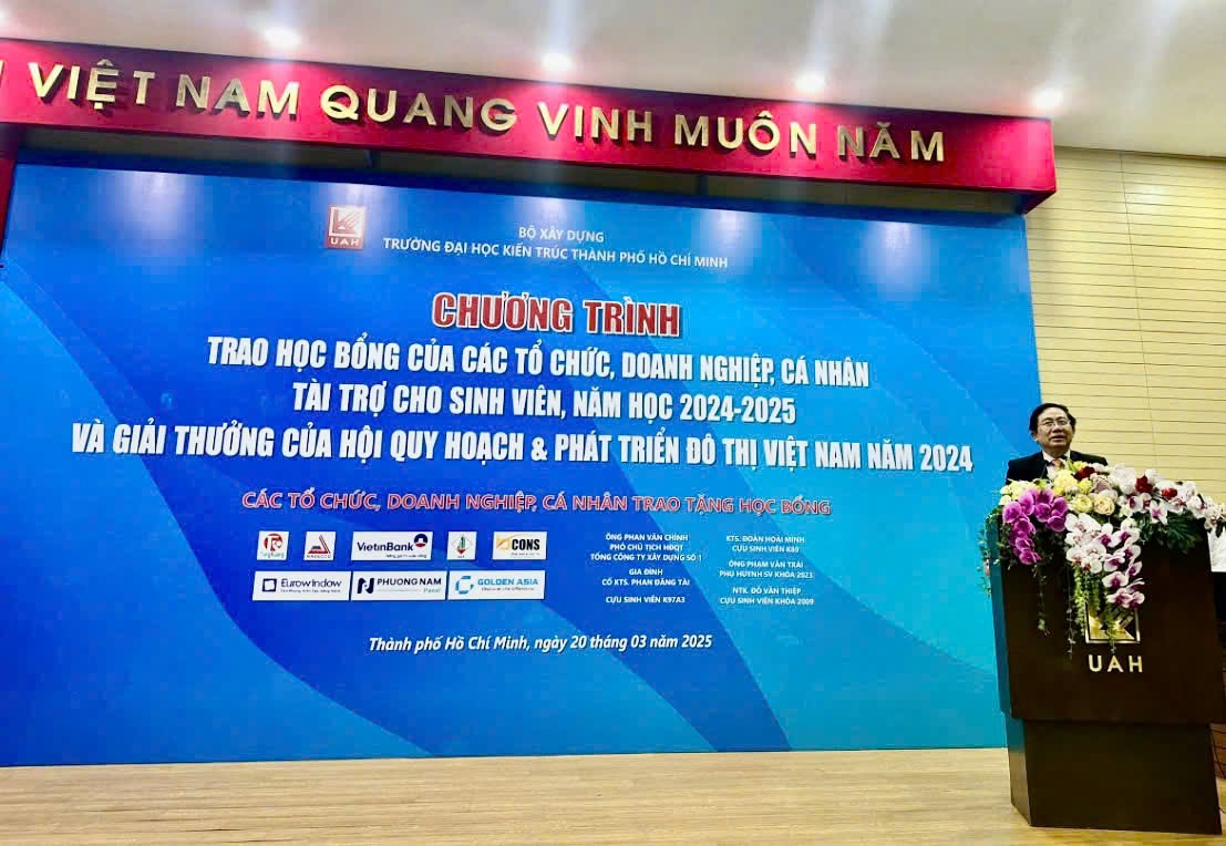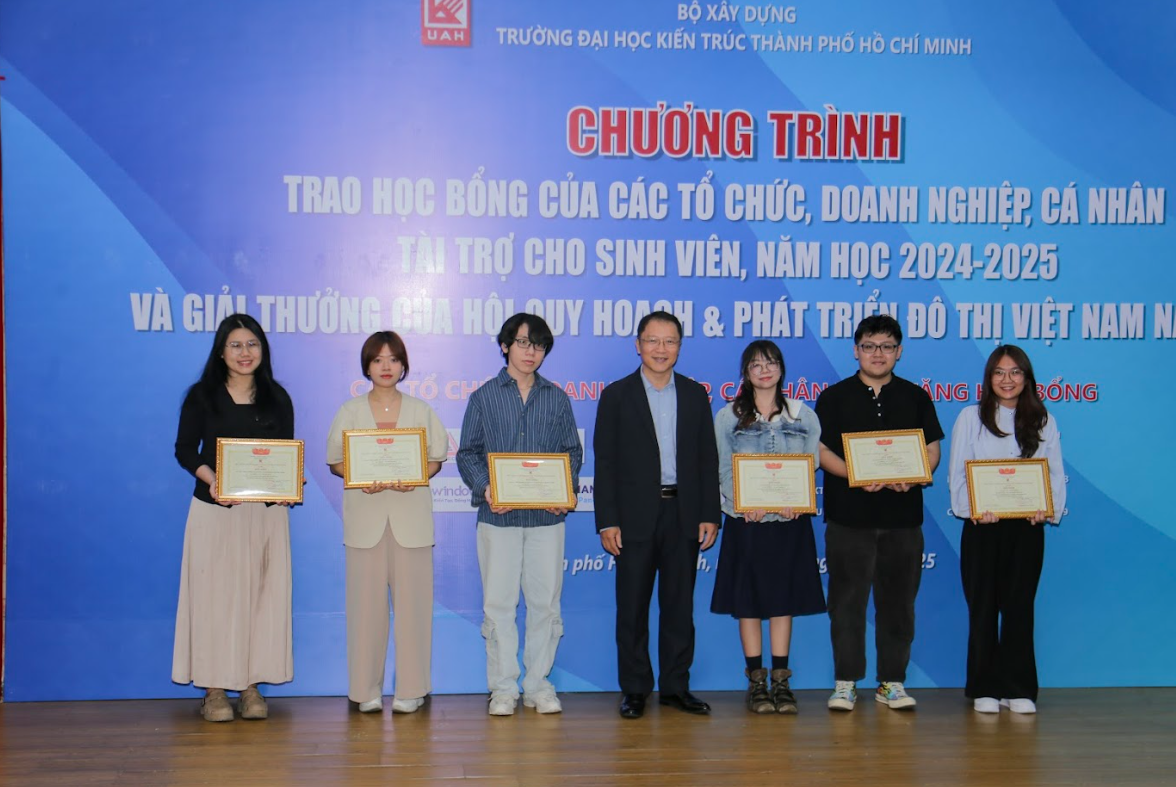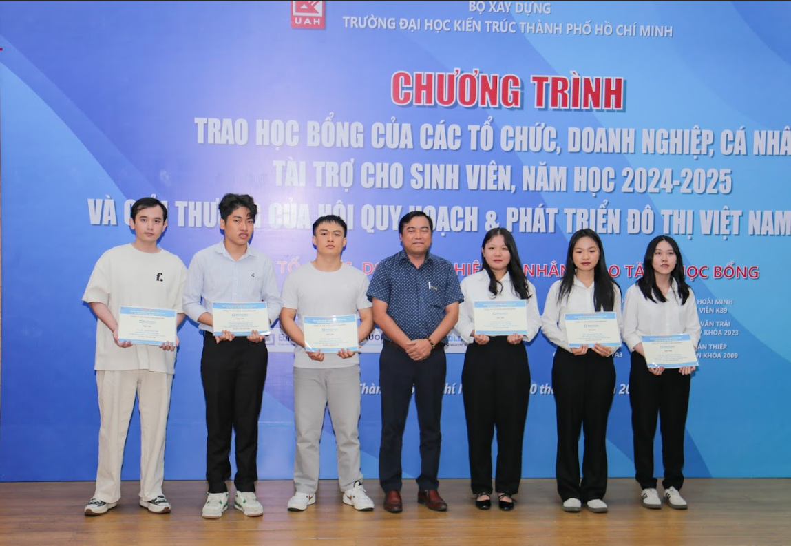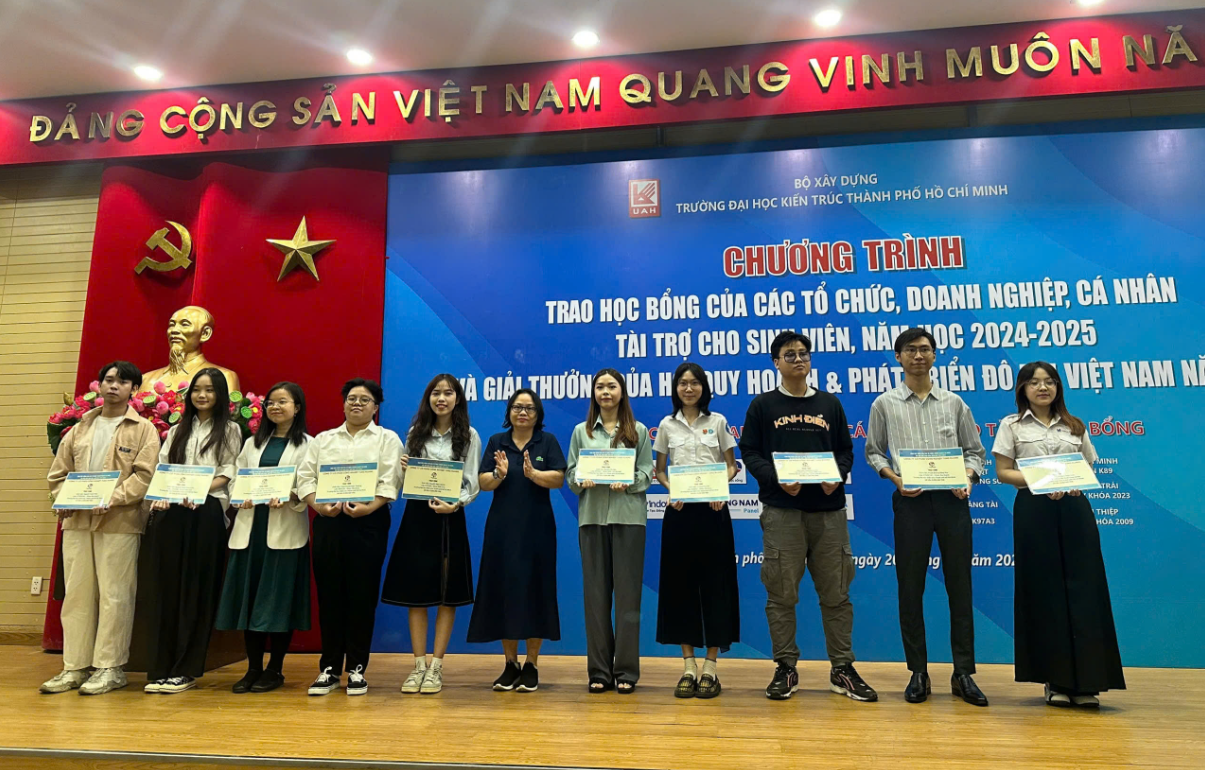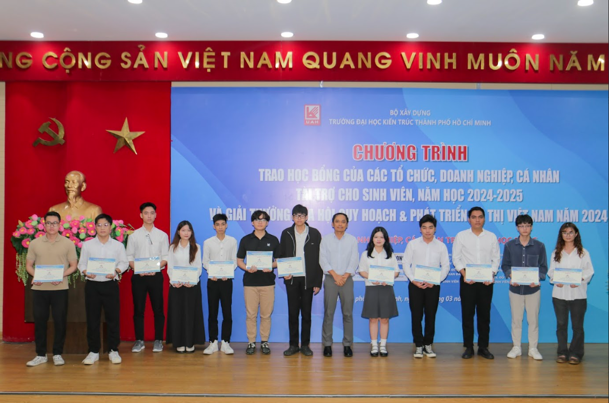 Trường Đại học Kiến trúc Thành phố Hồ Chí Minh trân trọng cảm ơn các tổ chức, doanh nghiệp và cá nhân đã đồng hành, trao tặng học bổng cho sinh viên Trường, năm học 2024-2025. Các suất học bổng đã mang lại nhiều giá trị thiết thực, tốt đẹp, từ đó giúp sinh viên vượt qua khó khăn, tiếp tục vững tâm trên hành trình học tập, tìm kiếm và làm chủ tri thức, từng bước hội nhập và cống hiến cho sự nghiệp xây dựng đất nước ngày càng tươi đẹp.