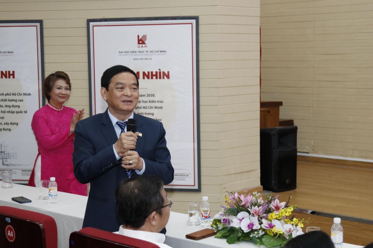 Phát biểu tại buổi họp mặt, PGS.TS.KTS Phạm Trọng Thuật - Hiệu trưởng Nhà trường - bày tỏ niềm xúc động khi được gặp cựu giáo chức qua nhiều thế hệ. Thầy khẳng định sức mạnh của UAH không chỉ đến từ nội lực của đội ngũ hiện tại, mà còn được hun đúc từ một di sản đẹp. Đó là di sản của tri thức, sự tận tâm và lòng yêu nghề mà các thế hệ đi trước đã để lại. Đó chính là nền tảng để Nhà trường tiếp tục vững bước trong thời kỳ đổi mới, chuyển đổi số, tự chủ đại học và hội nhập toàn diện.
