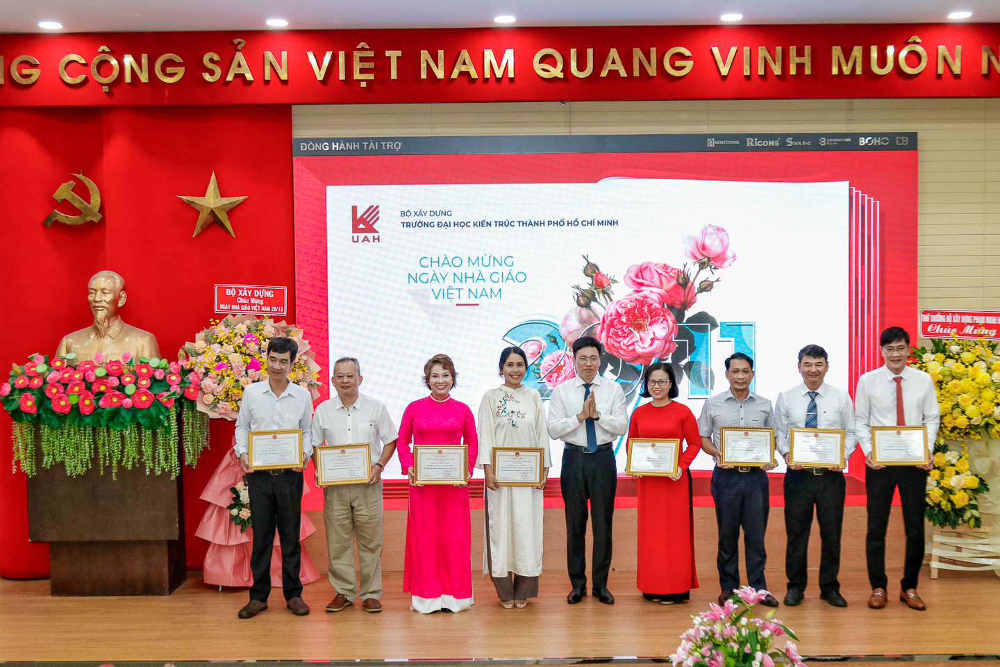 UAH xin gửi lời tri ân sâu sắc tới tập thể lãnh đạo, viên chức và người lao động Nhà trường - những người đã, đang và sẽ tiếp tục thắp sáng ngọn lửa tri thức, nuôi dưỡng ước mơ và góp phần xây dựng tương lai bền vững cho cộng đồng UAH. Sự cống hiến, lòng tận tụy và tinh thần truyền cảm hứng của thầy cô sẽ luôn là nền tảng vững chắc cho sự phát triển và uy tín của Nhà trường trong tương lai.