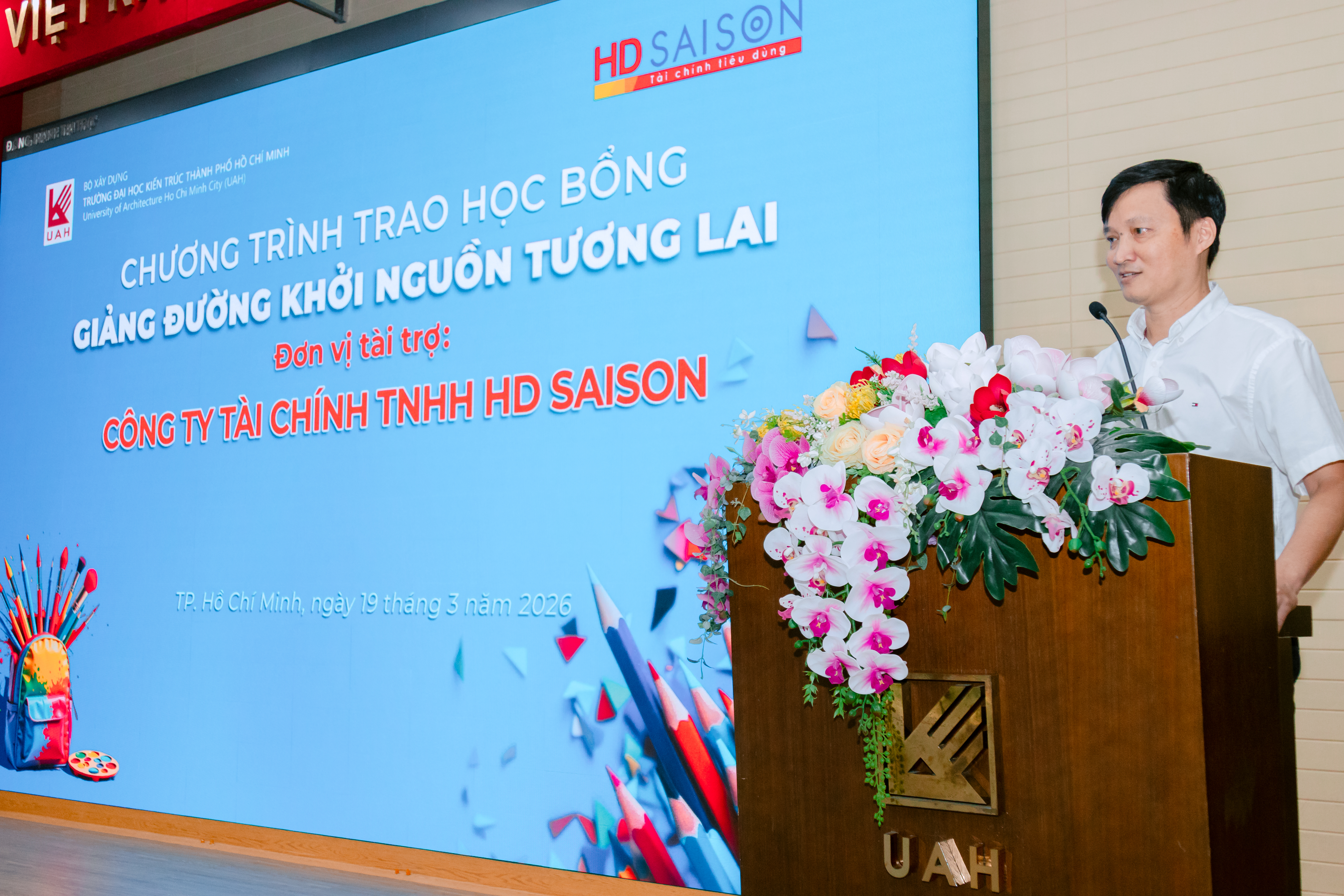 Đại diện đơn vị tài trợ, ông Nguyễn Đăng Mạnh - Trưởng đơn vị Kinh doanh Khu vực miền Nam bày tỏ sự trân trọng khi được đồng hành cùng UAH: “Chúng tôi tin rằng mỗi giảng đường không chỉ là nơi truyền đạt tri thức, mà còn là nơi khởi nguồn cho những ước mơ, những hành trình và cả những bước ngoặt lớn của cuộc đời. Những suất học bổng hôm nay không chỉ là sự hỗ trợ, mà còn là niềm tin chúng tôi gửi gắm vào thế hệ tương lai”.