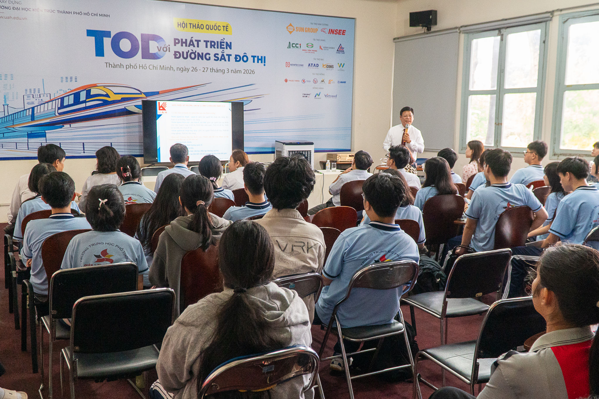 Trong khuôn khổ hoạt động tư vấn, hướng nghiệp dành cho học sinh phổ thông, sáng 17/4/2026, Trường Đại học Kiến trúc Thành phố Hồ Chí Minh (UAH) đã đón tiếp đoàn giáo viên và học sinh Trường THPT Ten Lơ Man đến tham quan, tìm hiểu môi trường học tập, cơ sở vật chất và định hướng ngành nghề tại Nhà trường. Chương trình là dịp để các em tiếp cận thực tế không gian đào tạo, đồng thời có thêm thông tin cần thiết cho việc lựa chọn ngành học trong tương lai.