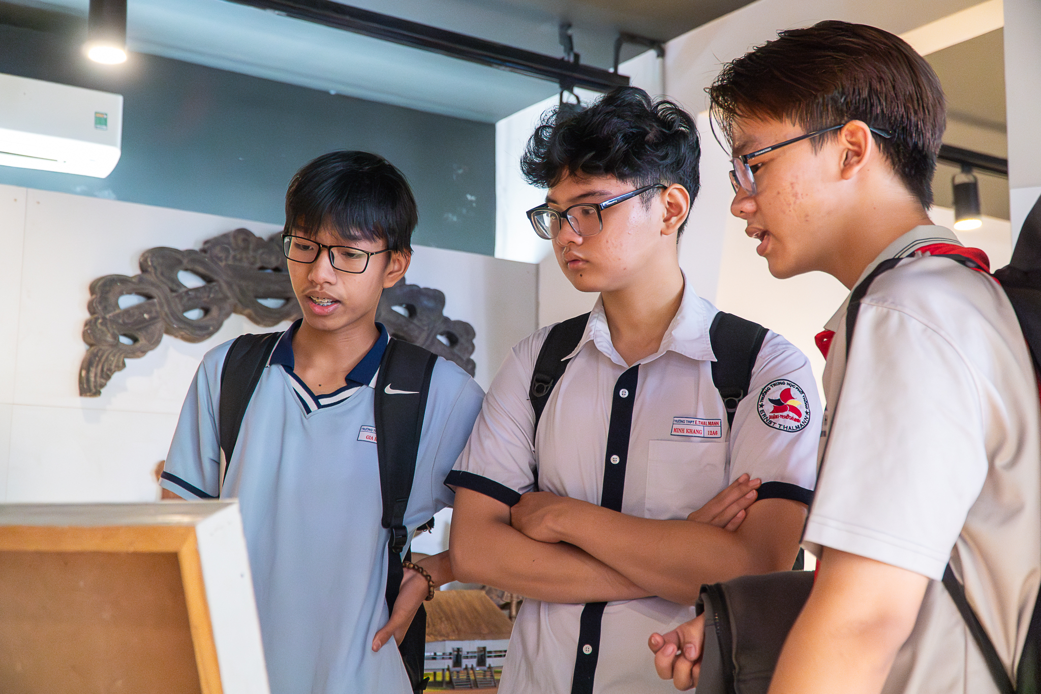 Trong khuôn khổ chương trình, đoàn học sinh còn được tham quan hệ thống phòng học, xưởng thực hành và khu trưng bày đồ án, sản phẩm sáng tạo của sinh viên. Những không gian học tập mang tính đặc thù của UAH, cùng các sản phẩm thiết kế đa dạng, đã tạo ấn tượng mạnh mẽ, góp phần khơi gợi niềm đam mê sáng tạo và tinh thần học hỏi ở các em.
