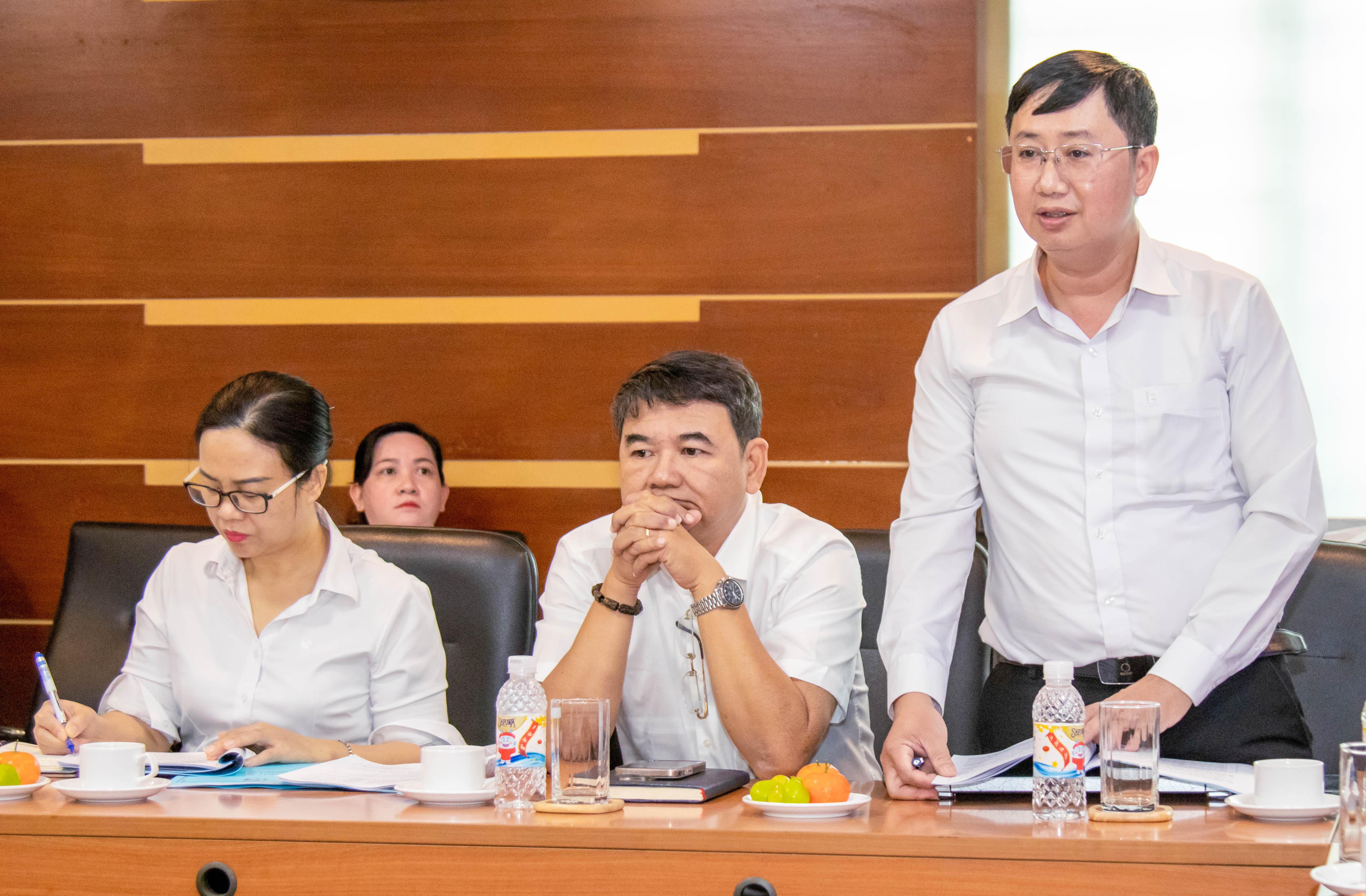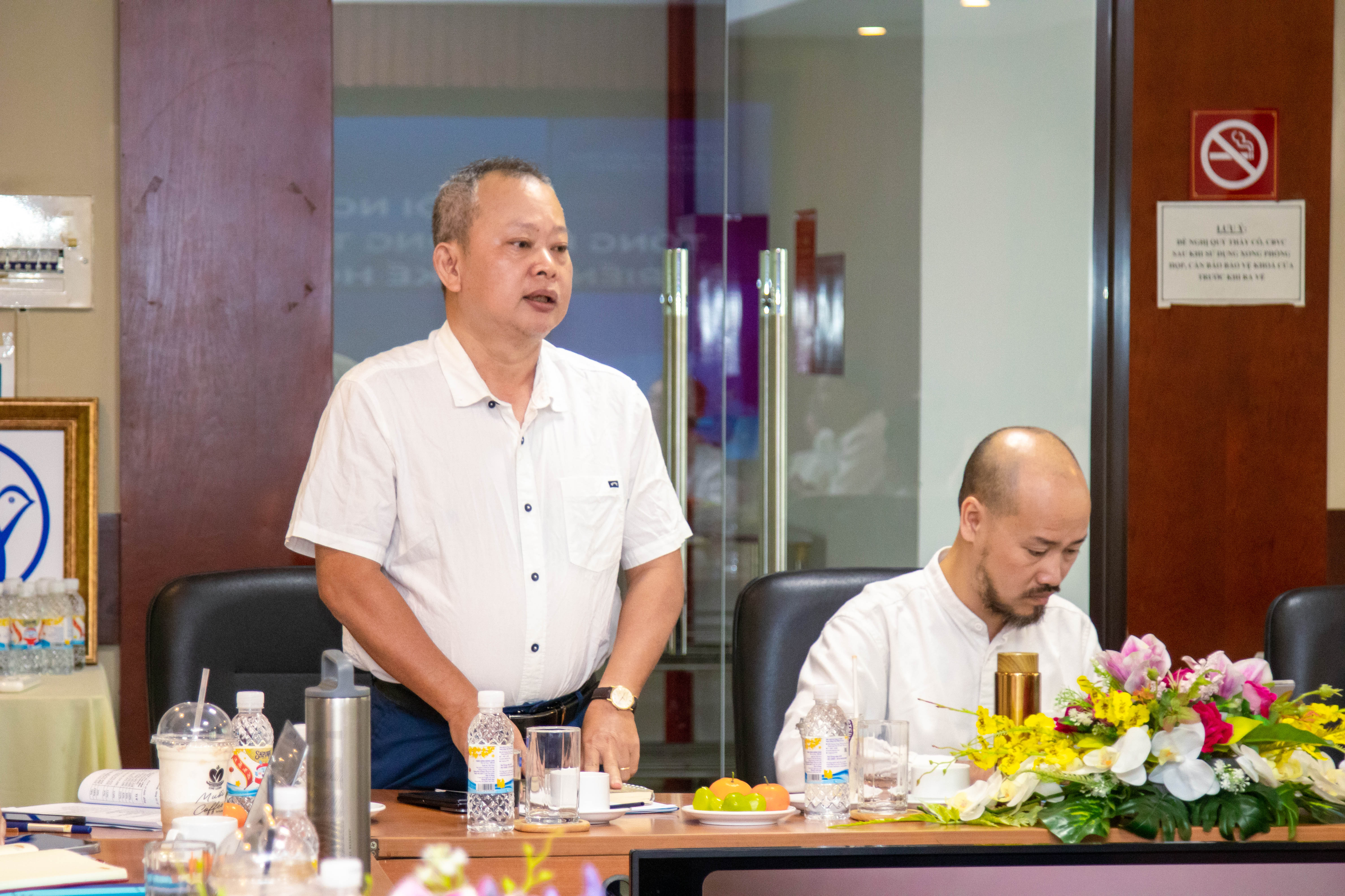 ThS.KTS. Nguyễn Huy Văn - Trưởng phòng Tổ chức nhân sự trình bày các nội dung hướng đến cột mốc kỷ niệm 50 năm thành lập Trường