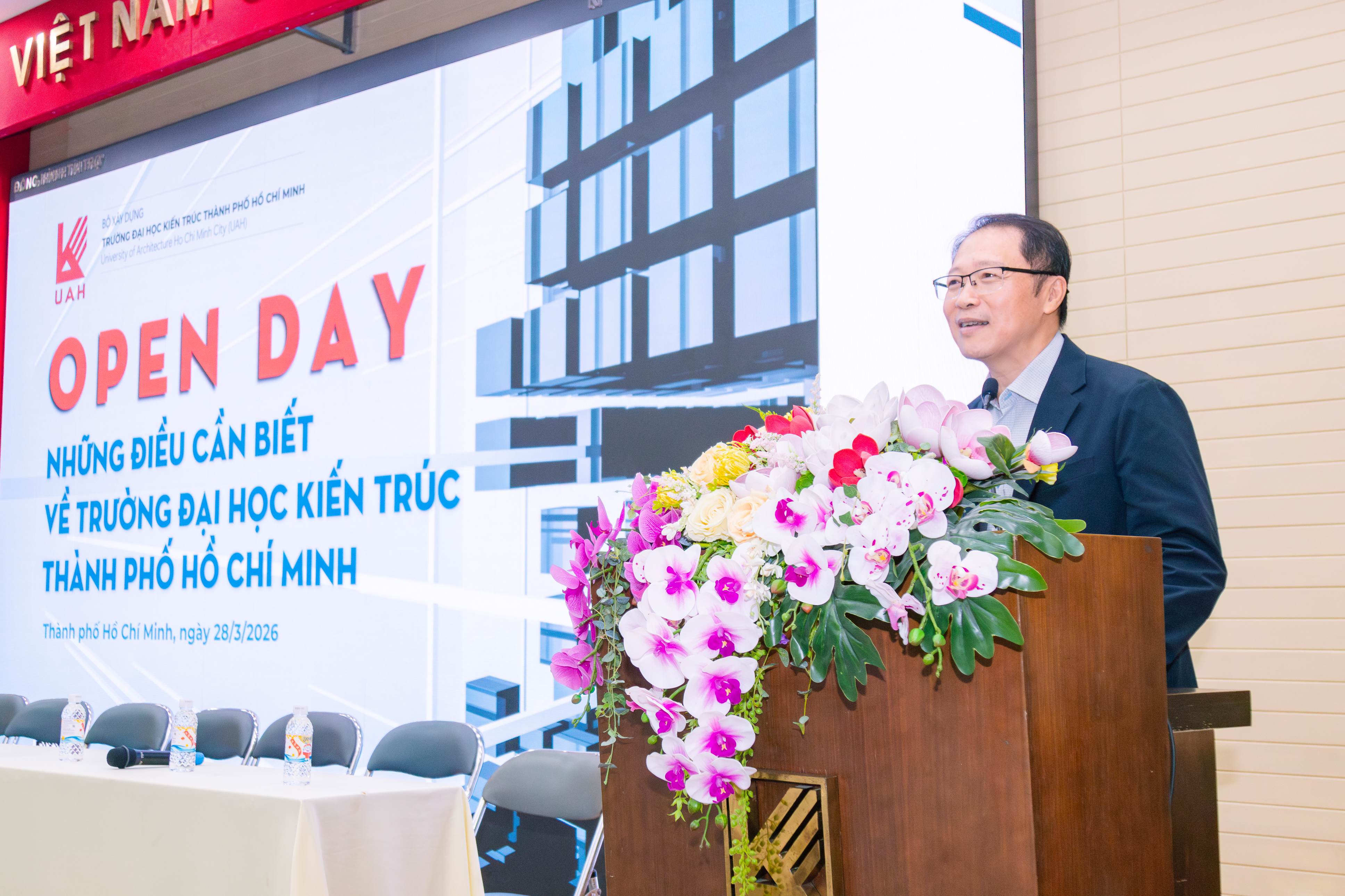 Sáng 28/3/2026, Trường Đại học Kiến trúc Thành phố Hồ Chí Minh (UAH) tổ chức chương trình Open Day 2026 đợt đầu tiên, mở ra không gian đối thoại trực tiếp và tư vấn chuyên sâu cho mùa tuyển sinh đại học năm nay. Sự kiện ghi nhận sự tham gia đông đảo của hơn 200 phụ huynh và học sinh trung học phổ thông đến từ nhiều khu vực tỉnh thành, trong đó có cả học sinh đến từ Lâm Đồng, Tây Ninh.