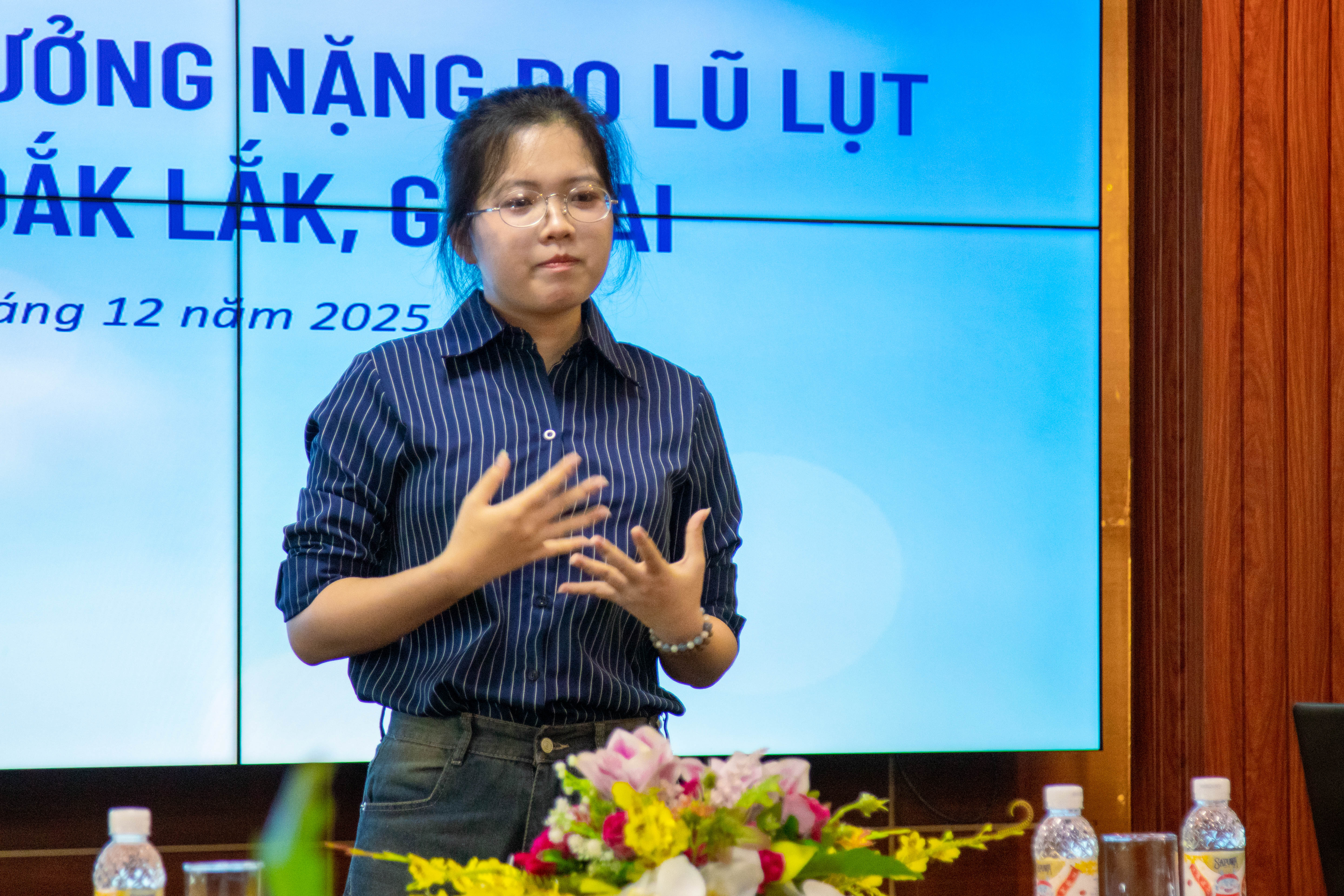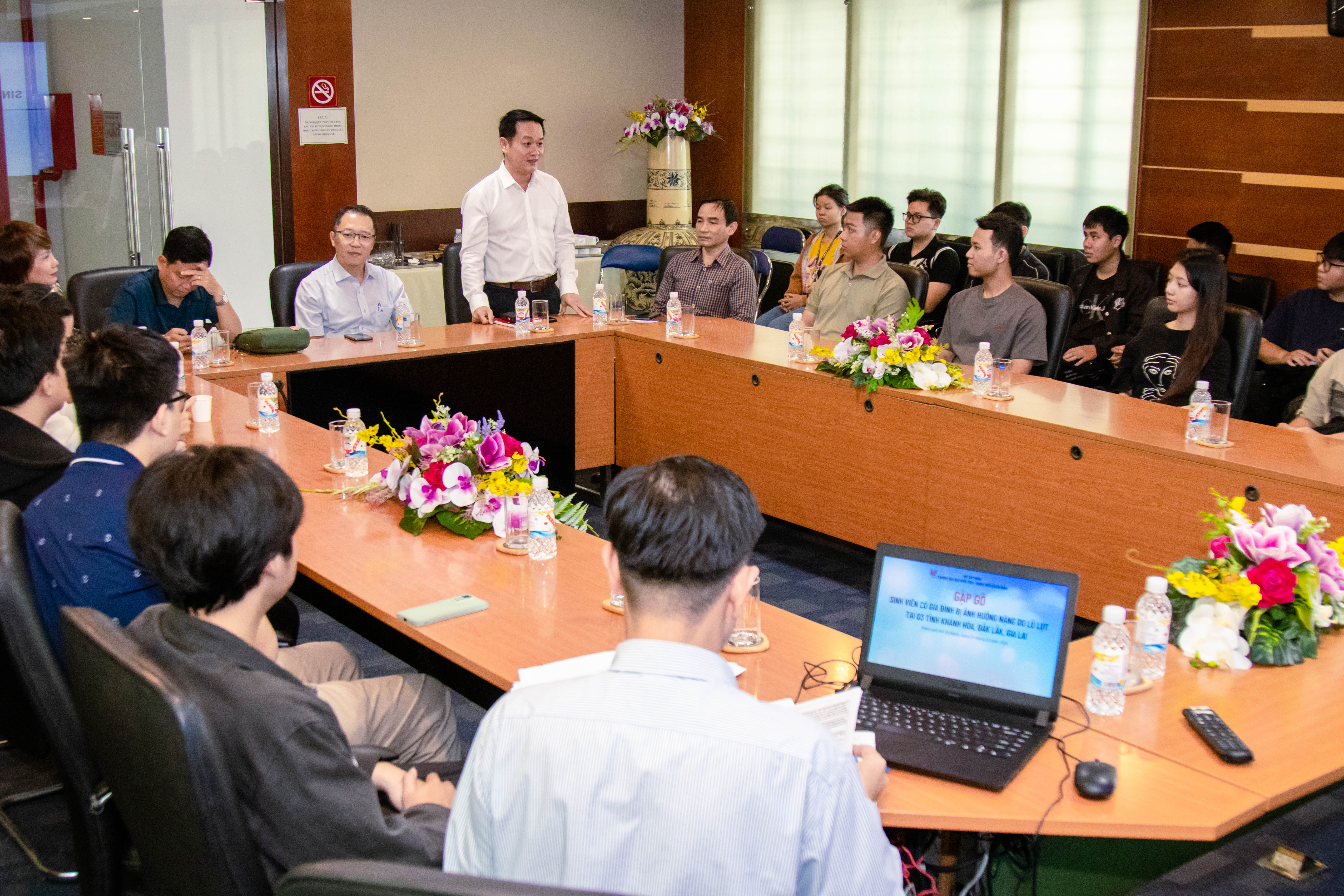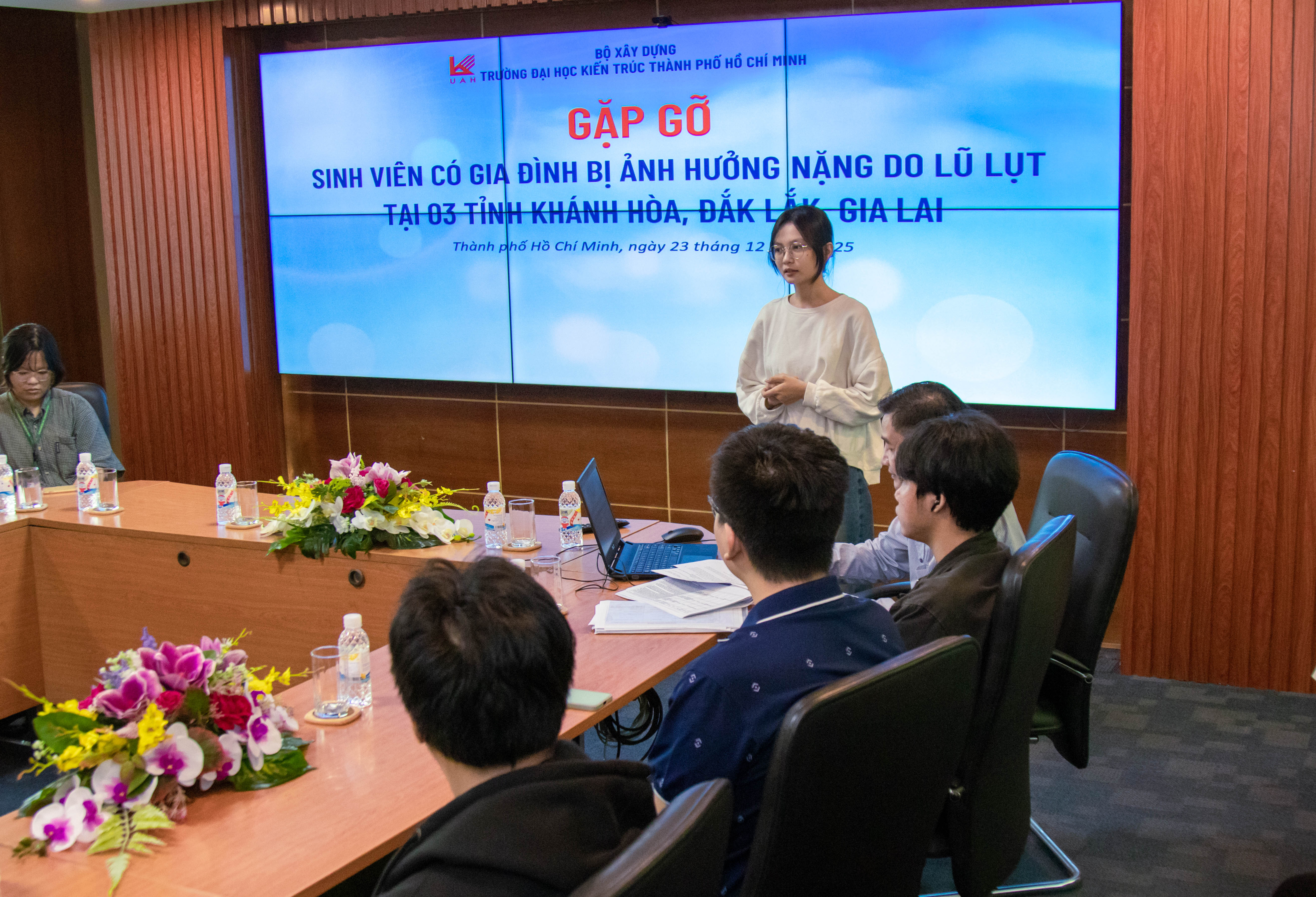 Đồng hành và sát cánh cùng sinh viên, ThS. Nguyễn Thị Thảo Trang - Trưởng phòng Công tác sinh viên cho biết, điều Nhà trường đặc biệt quan tâm không chỉ là thiệt hại vật chất mà còn là tâm lý của sinh viên sau thiên tai. “Điều chúng tôi lo lắng nhất không chỉ là những hư hại vật chất, mà là tâm lý của các em. Có những em ngồi trên giảng đường nhưng lòng luôn lo lắng cho gia đình ở vùng lũ. Sự đồng hành của Nhà trường vì thế sẽ không dừng lại ở một buổi họp mặt, mà là một cam kết dài lâu để các em luôn cảm thấy an tâm”, cô khẳng định.