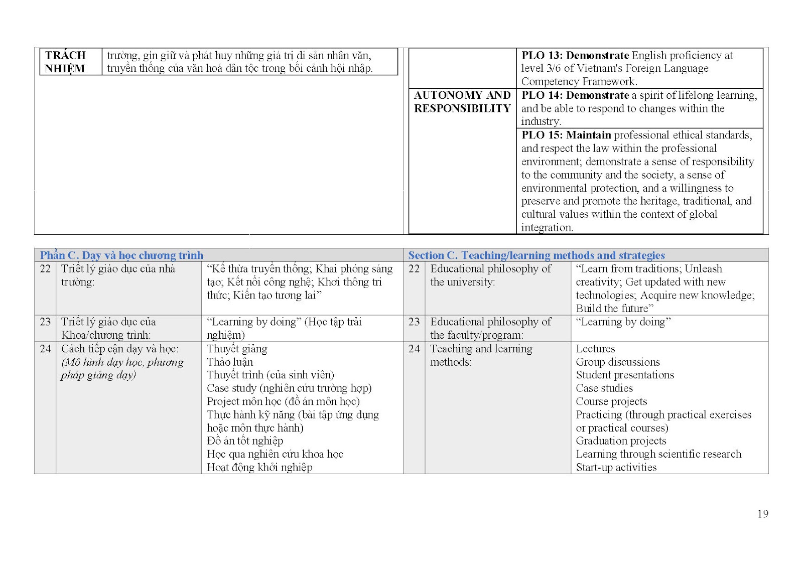 Chương trình được thiết kế với 150 tín chỉ bao gồm: khối kiến thức giáo dục đại cương và khối kiến thức giáo dục chuyên ngành được phân bố hợp lí xuyên suốt 5 năm học.