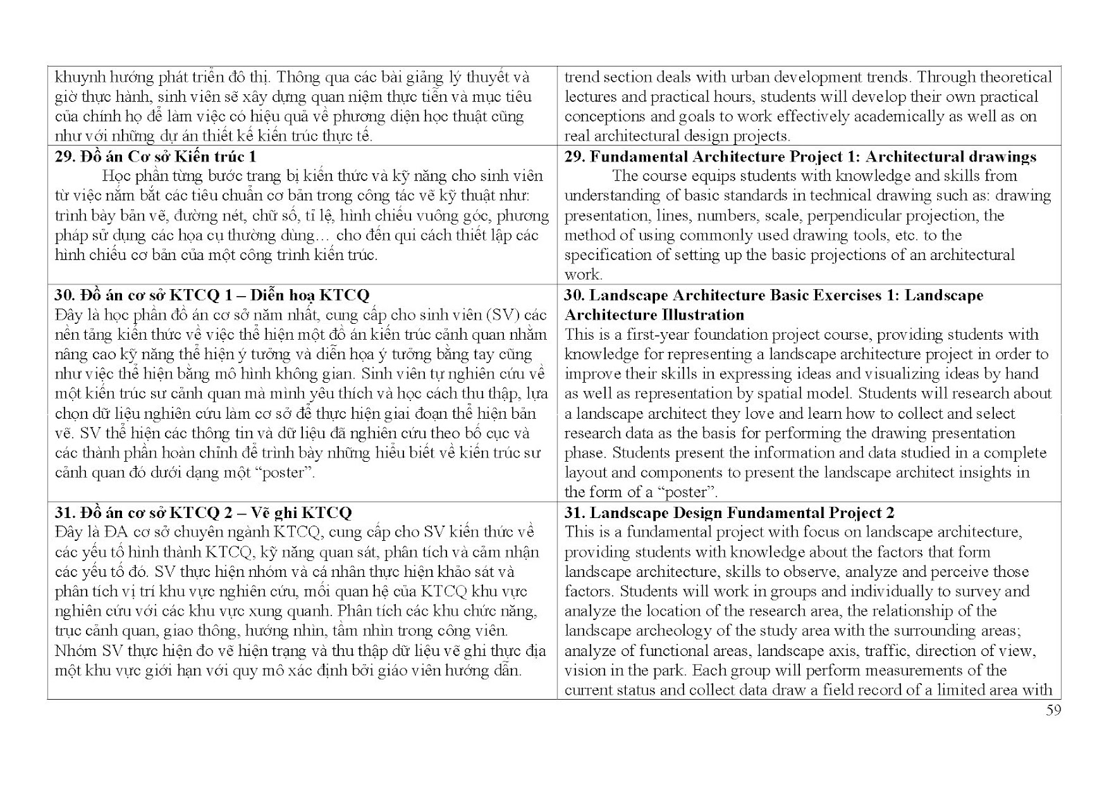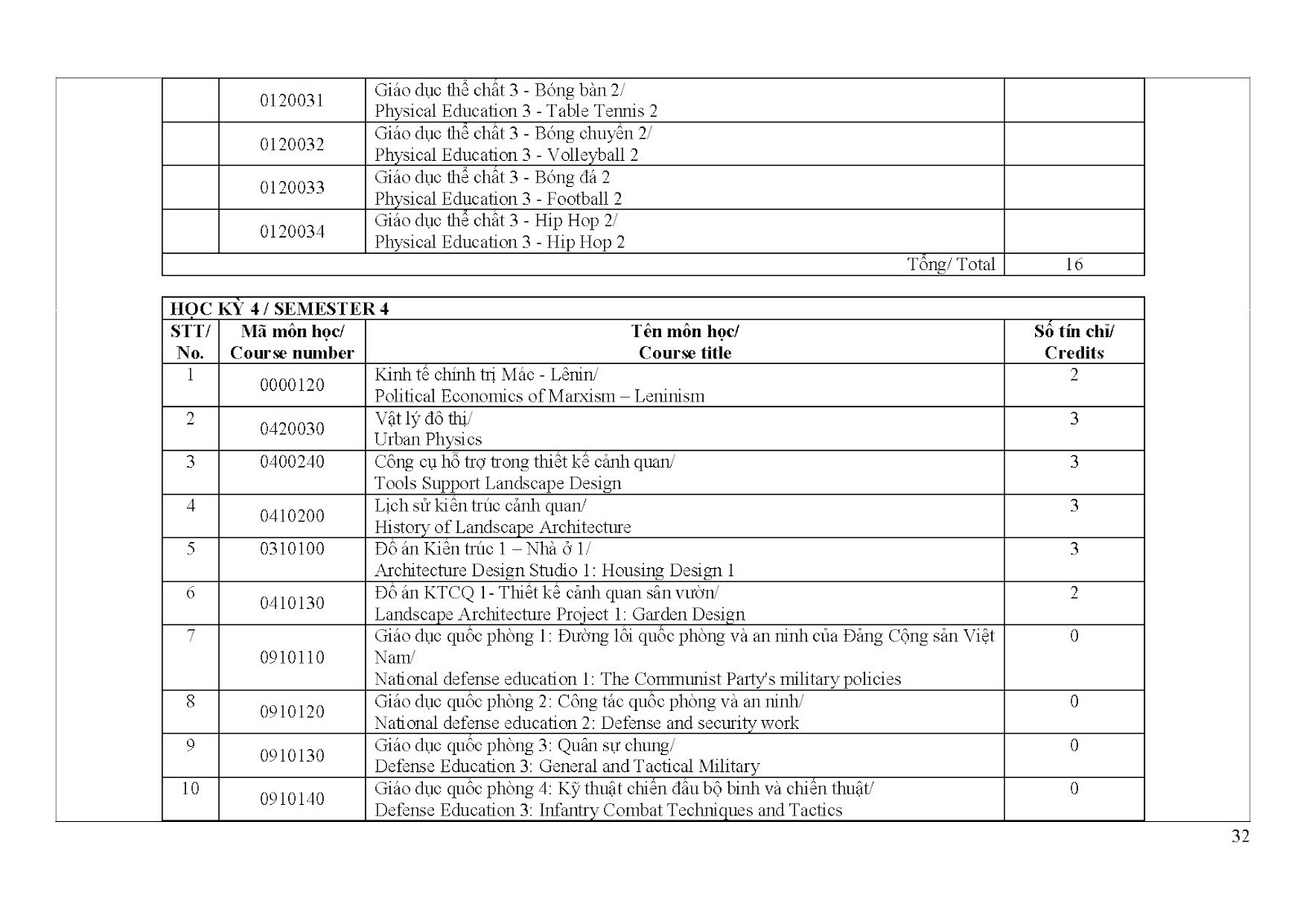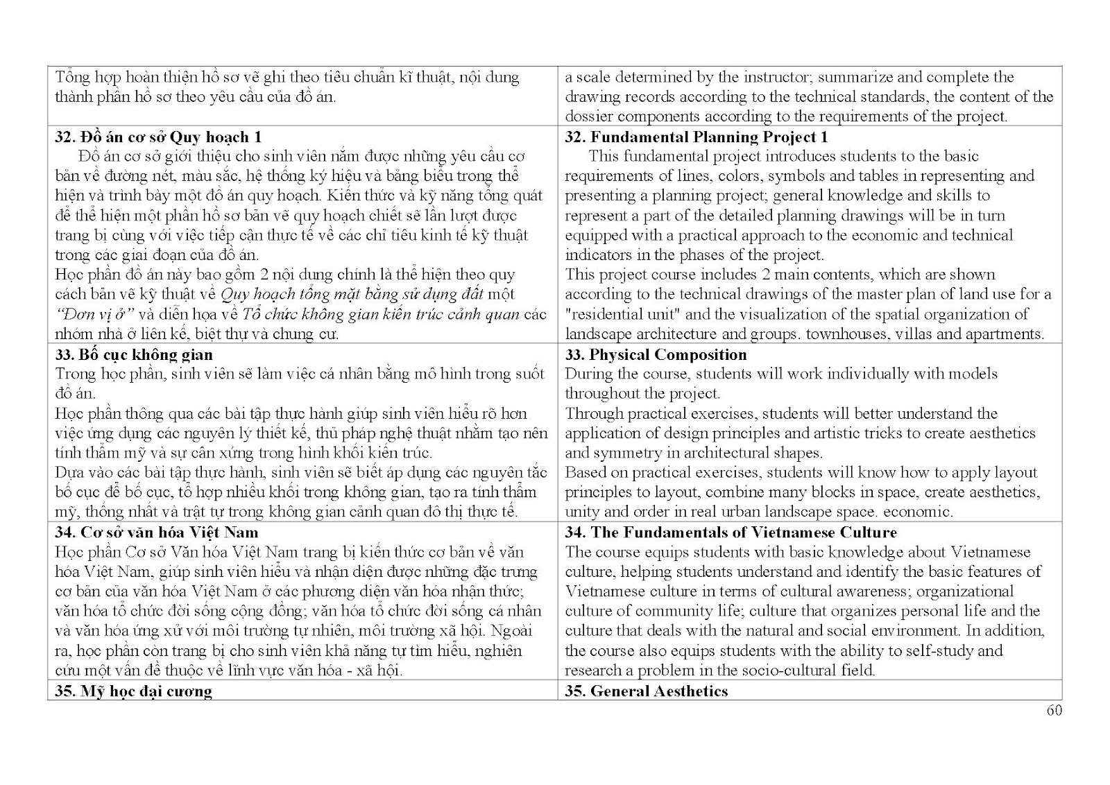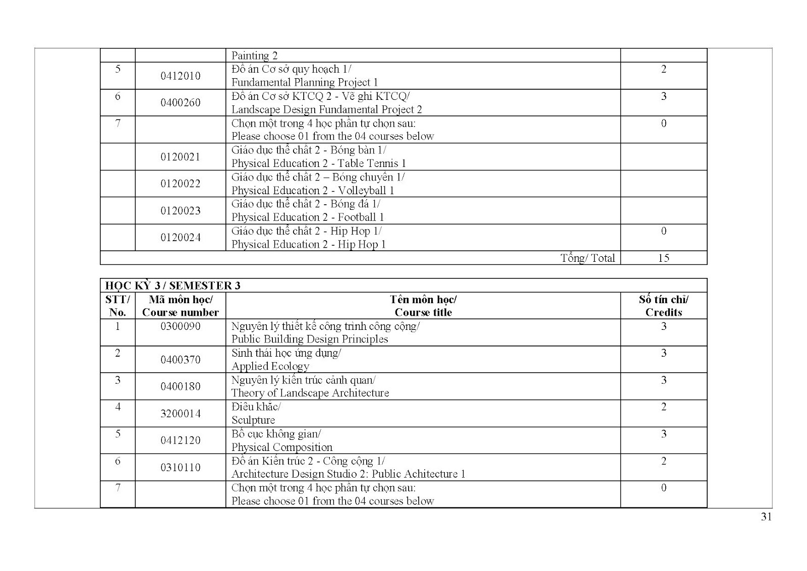 | 7 | 0310030 | Đồ án Cơ sở kiến trúc 2 | 2.00 | Bắt Buộc |