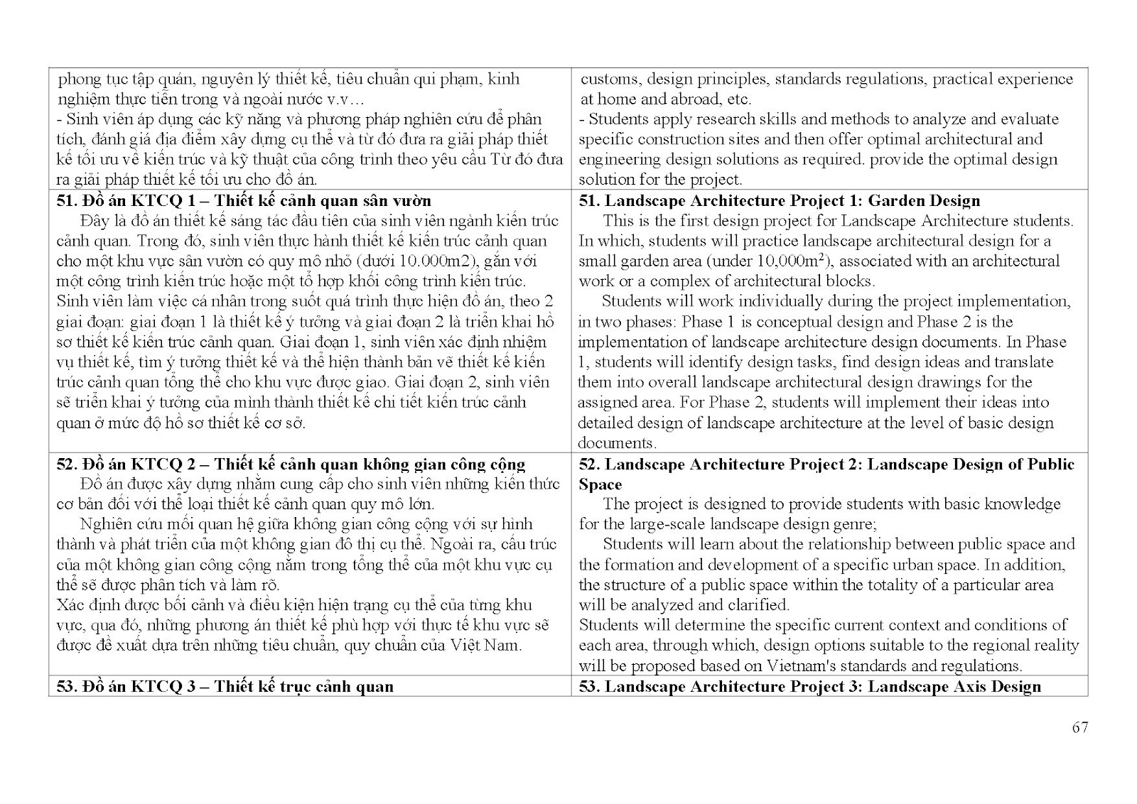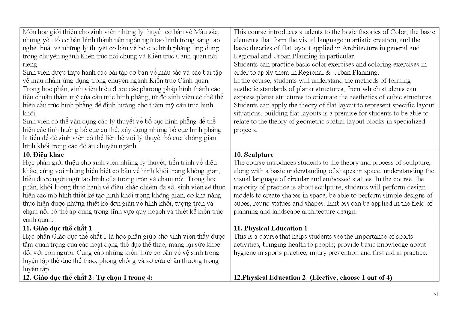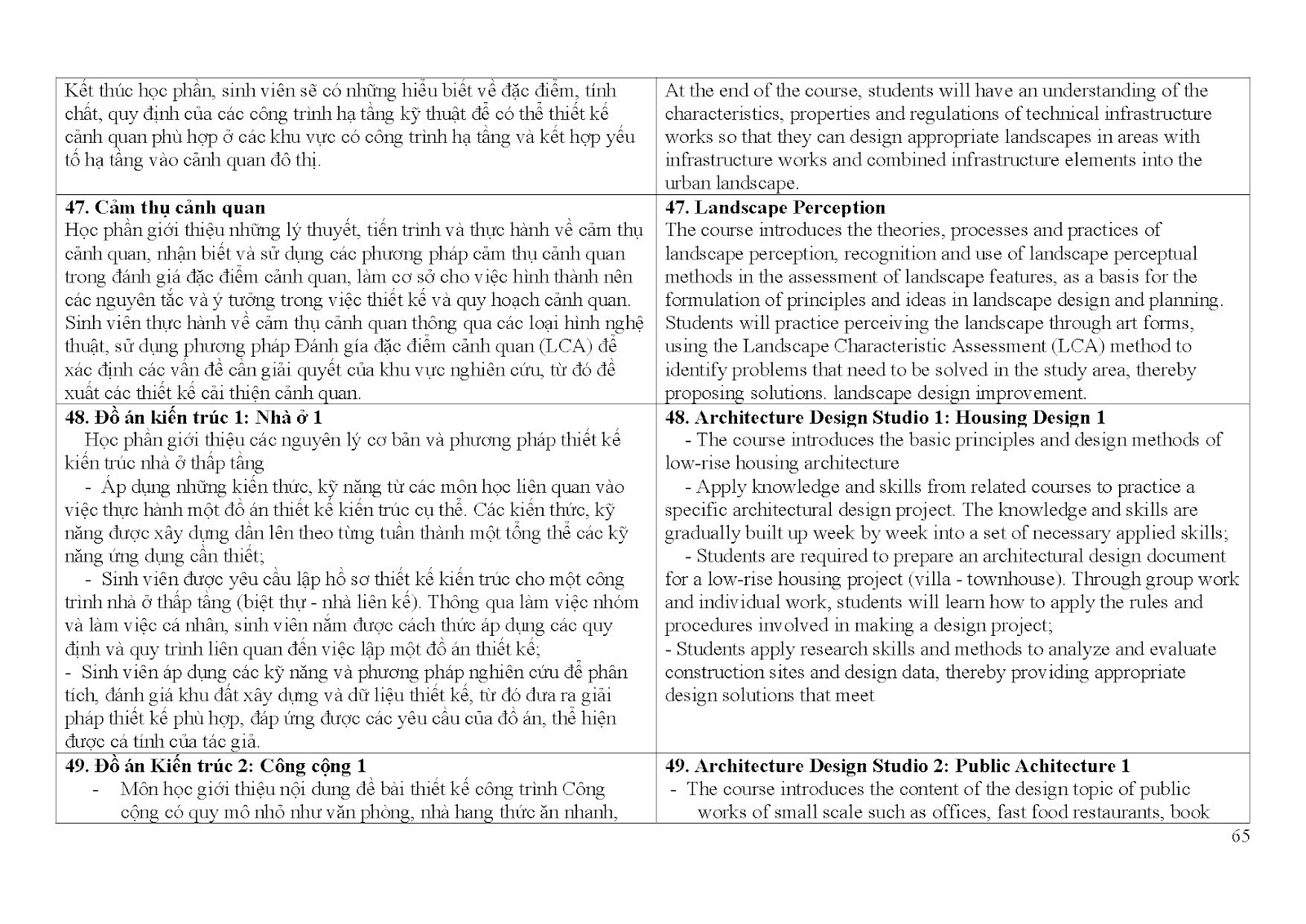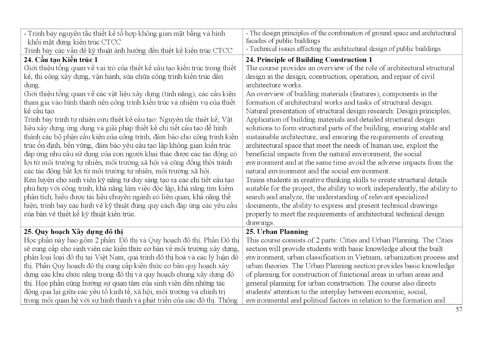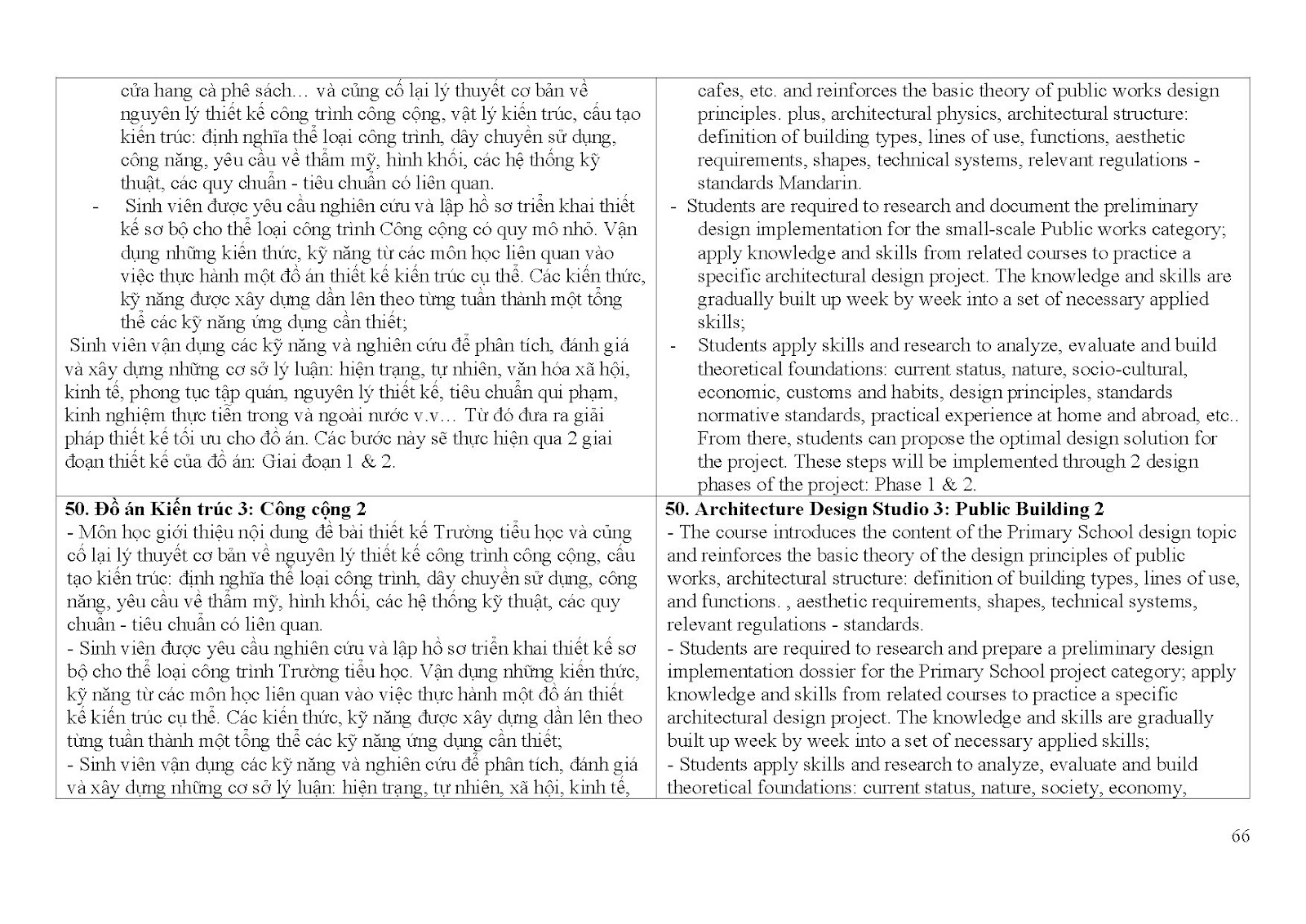 | 7 | 0310030 | Đồ án Cơ sở kiến trúc 2 | 2.00 | Bắt Buộc |