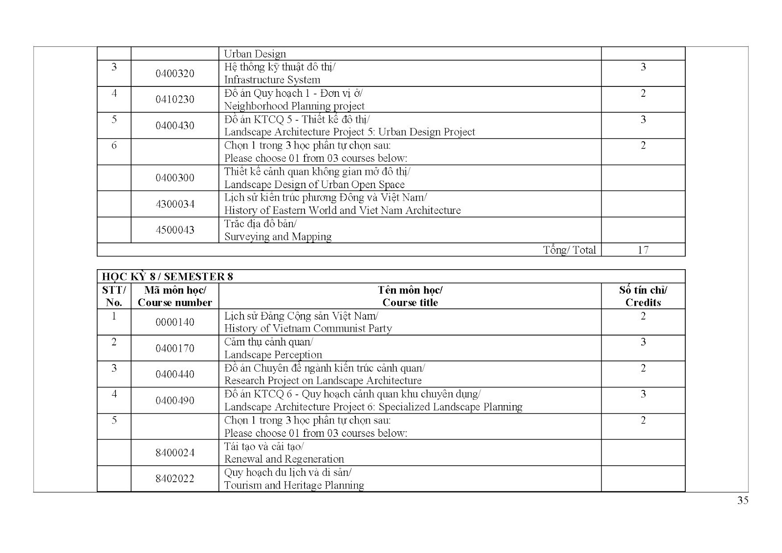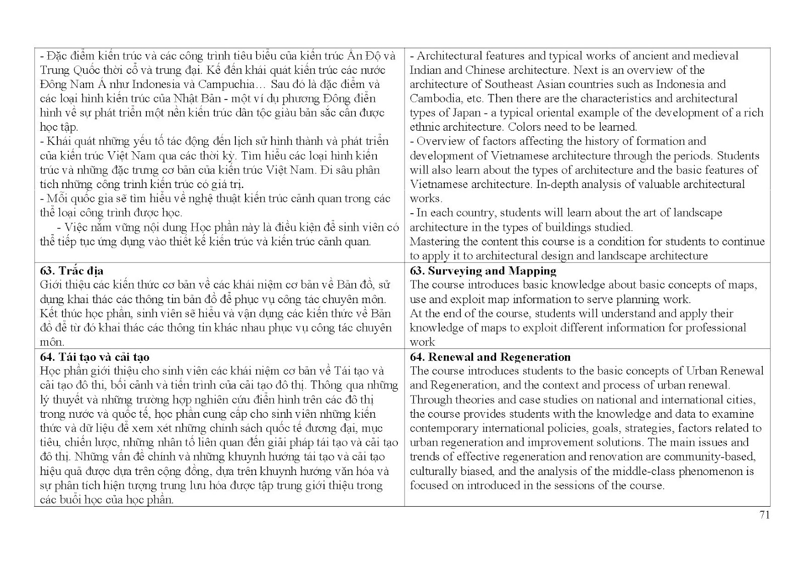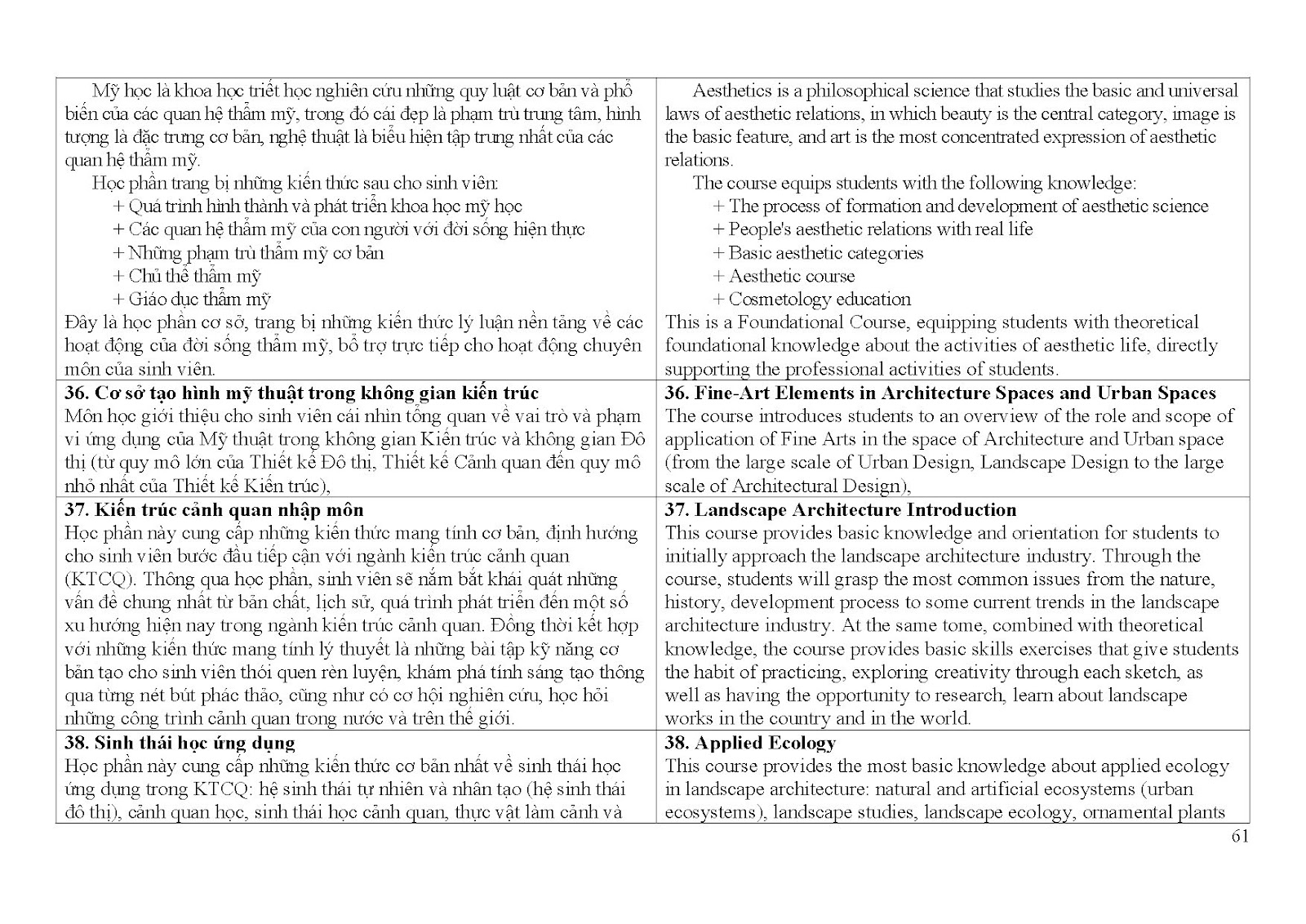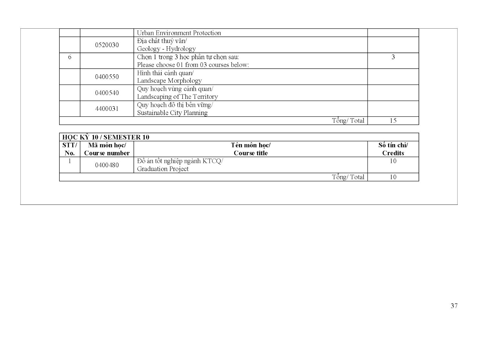 | 7 | 0310030 | Đồ án Cơ sở kiến trúc 2 | 2.00 | Bắt Buộc |