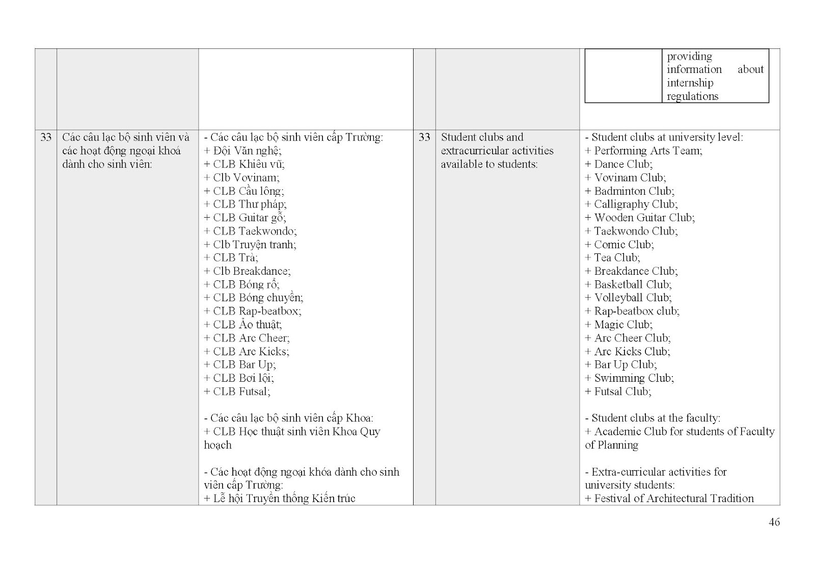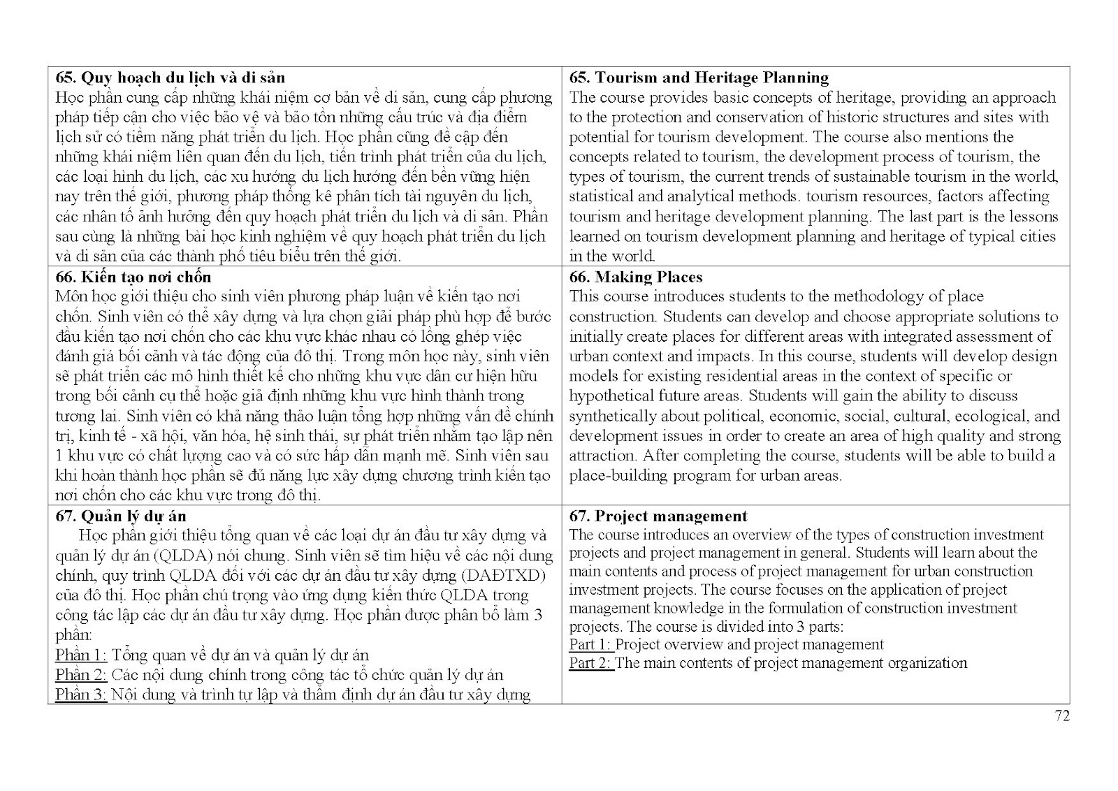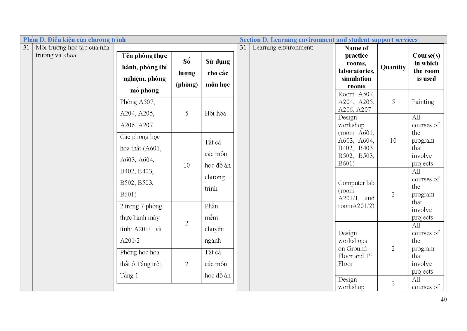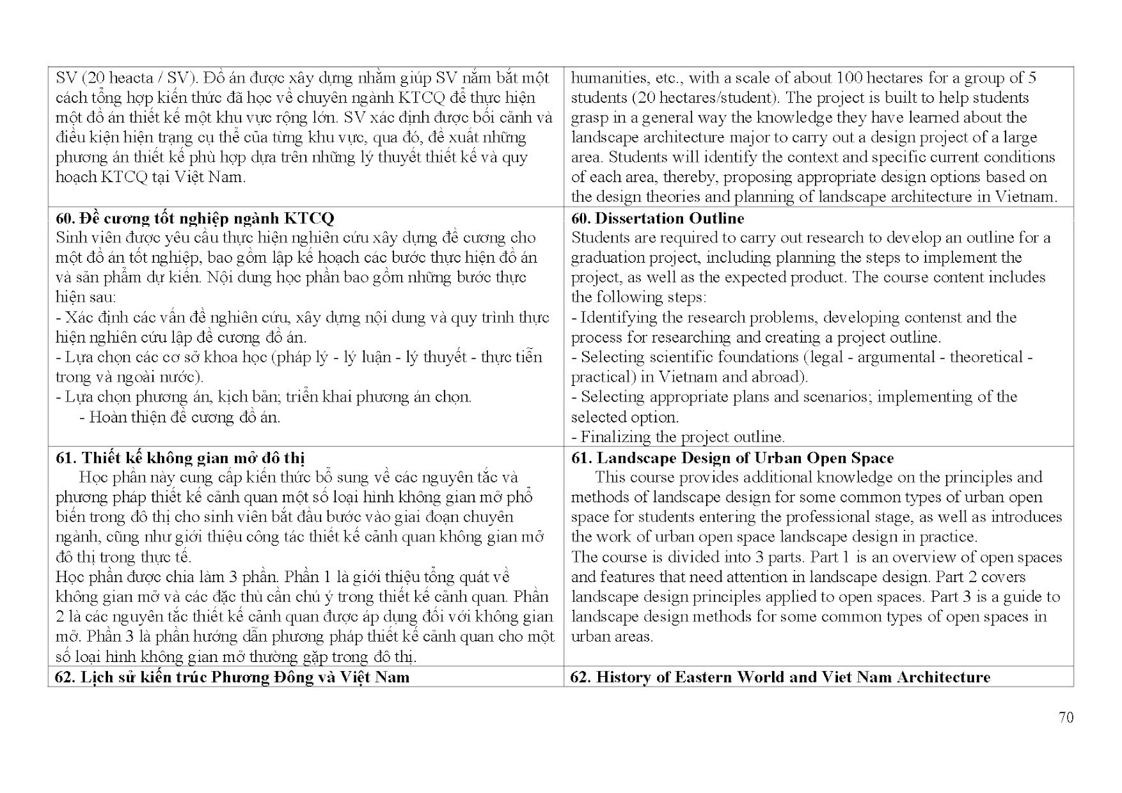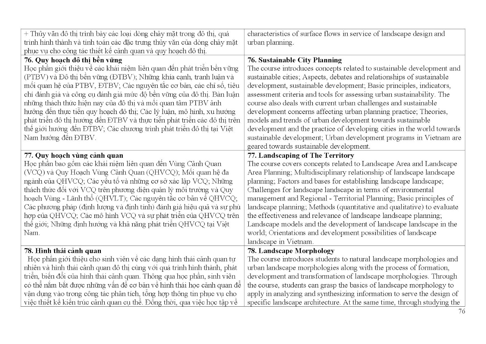 | 7 | 0310030 | Đồ án Cơ sở kiến trúc 2 | 2.00 | Bắt Buộc |