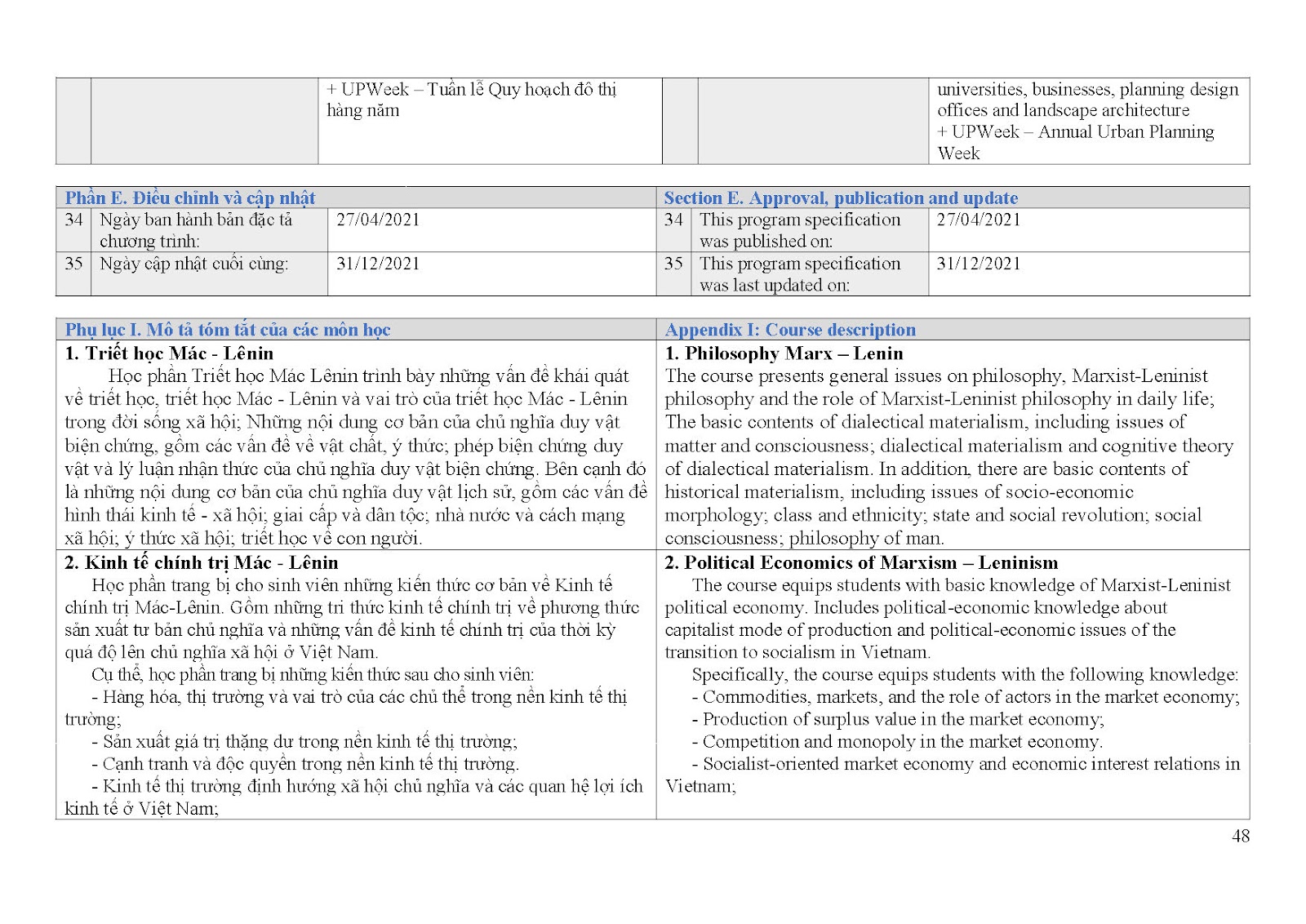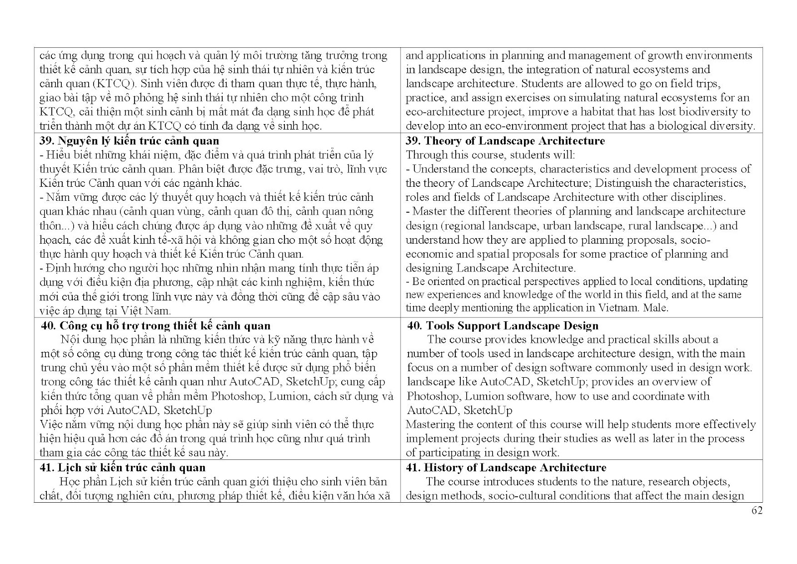 | 6 | 0310020 | Đồ án Cơ sở kiến trúc 1 | 3.00 | Bắt Buộc |