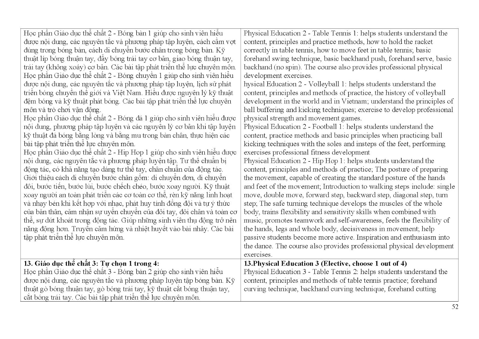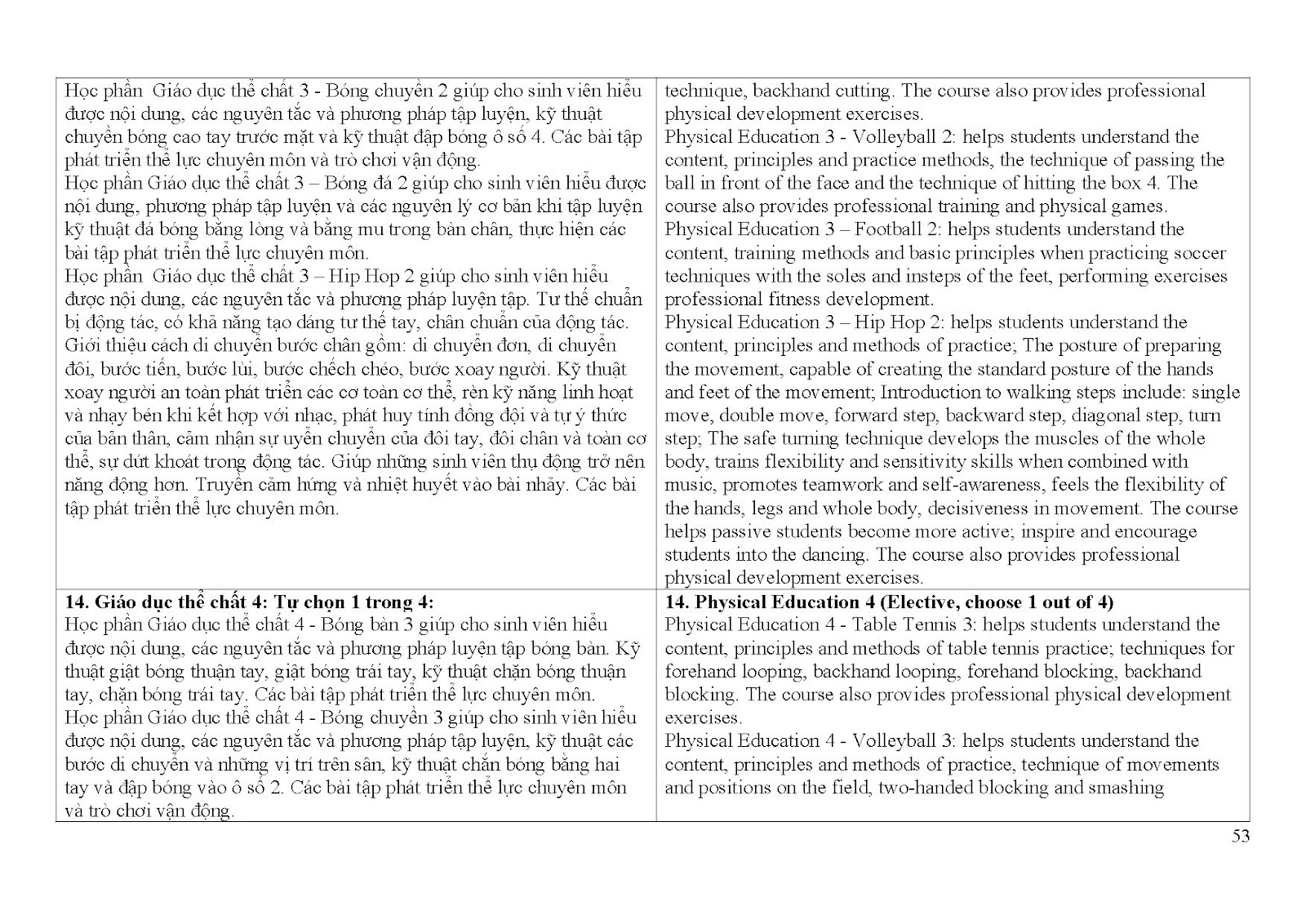 | 3 | 0120010 | Giáo dục thể chất 1 | 0 | Bắt Buộc |
