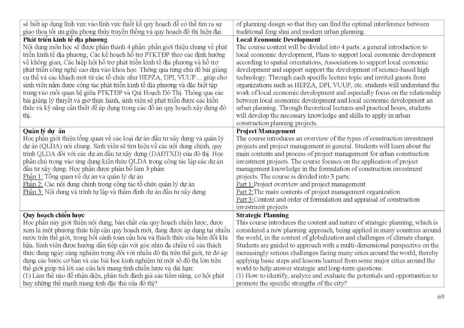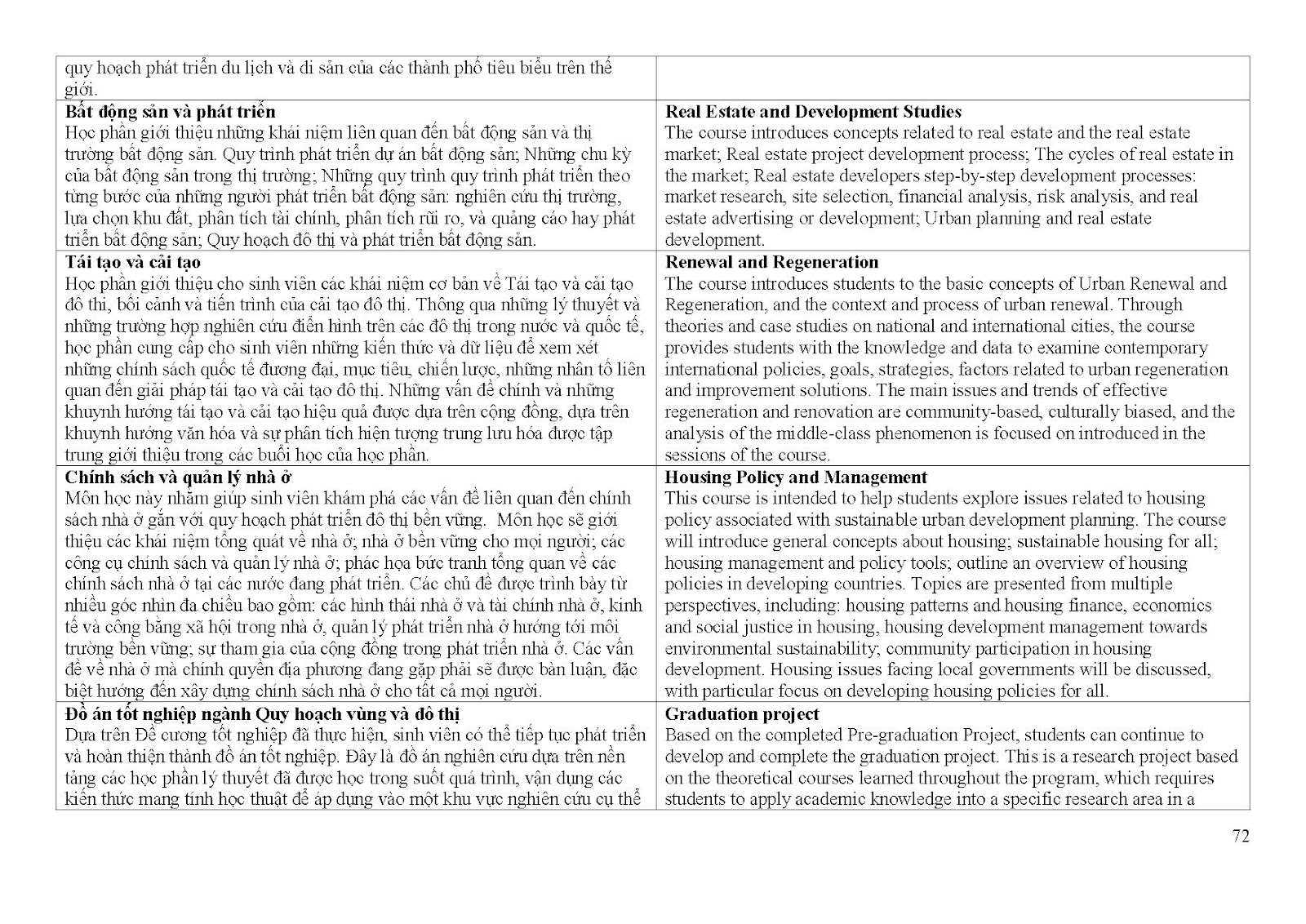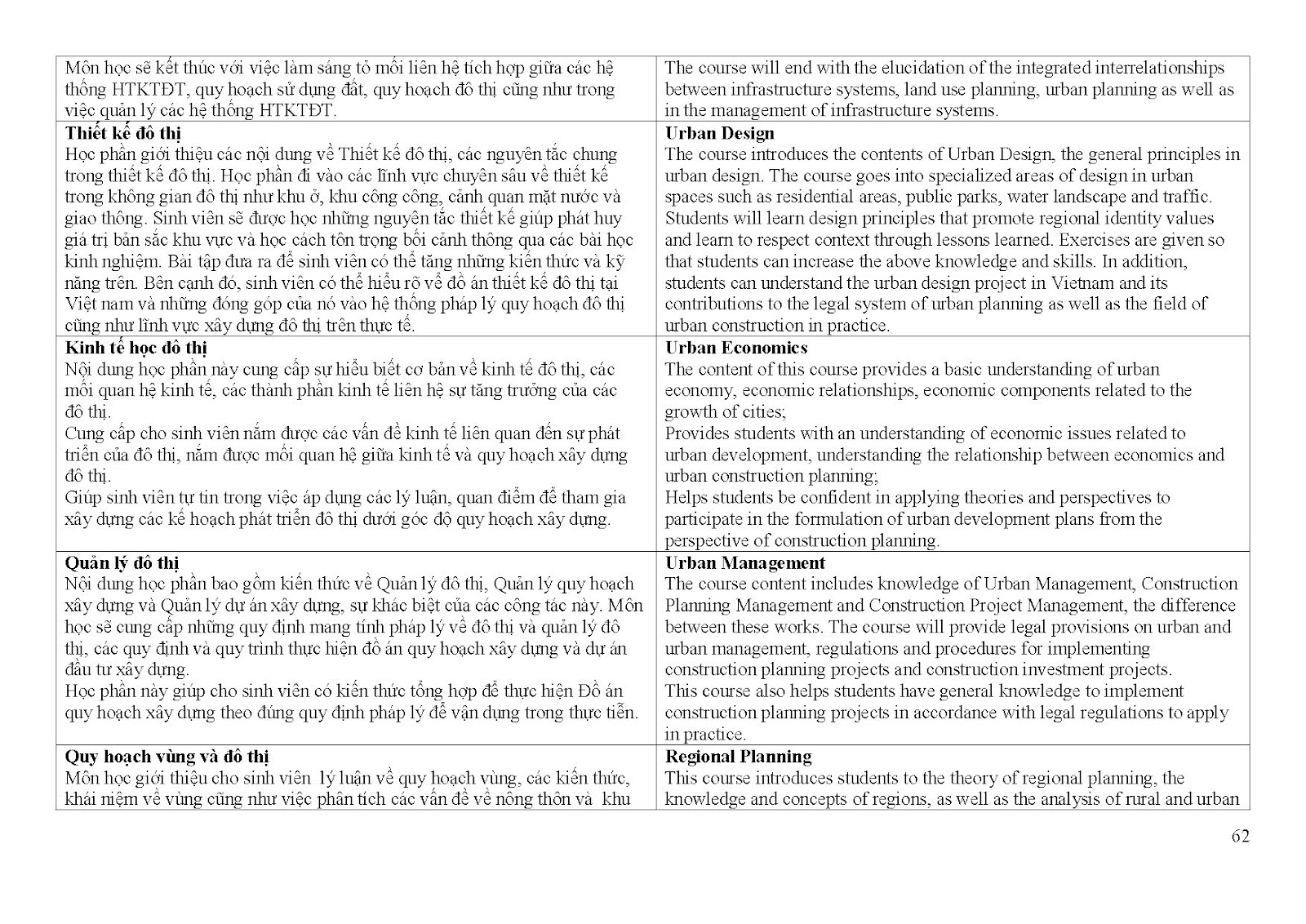 Giới thiệu về chương trình đào tạo ngành Quy hoạch vùng và đô thị