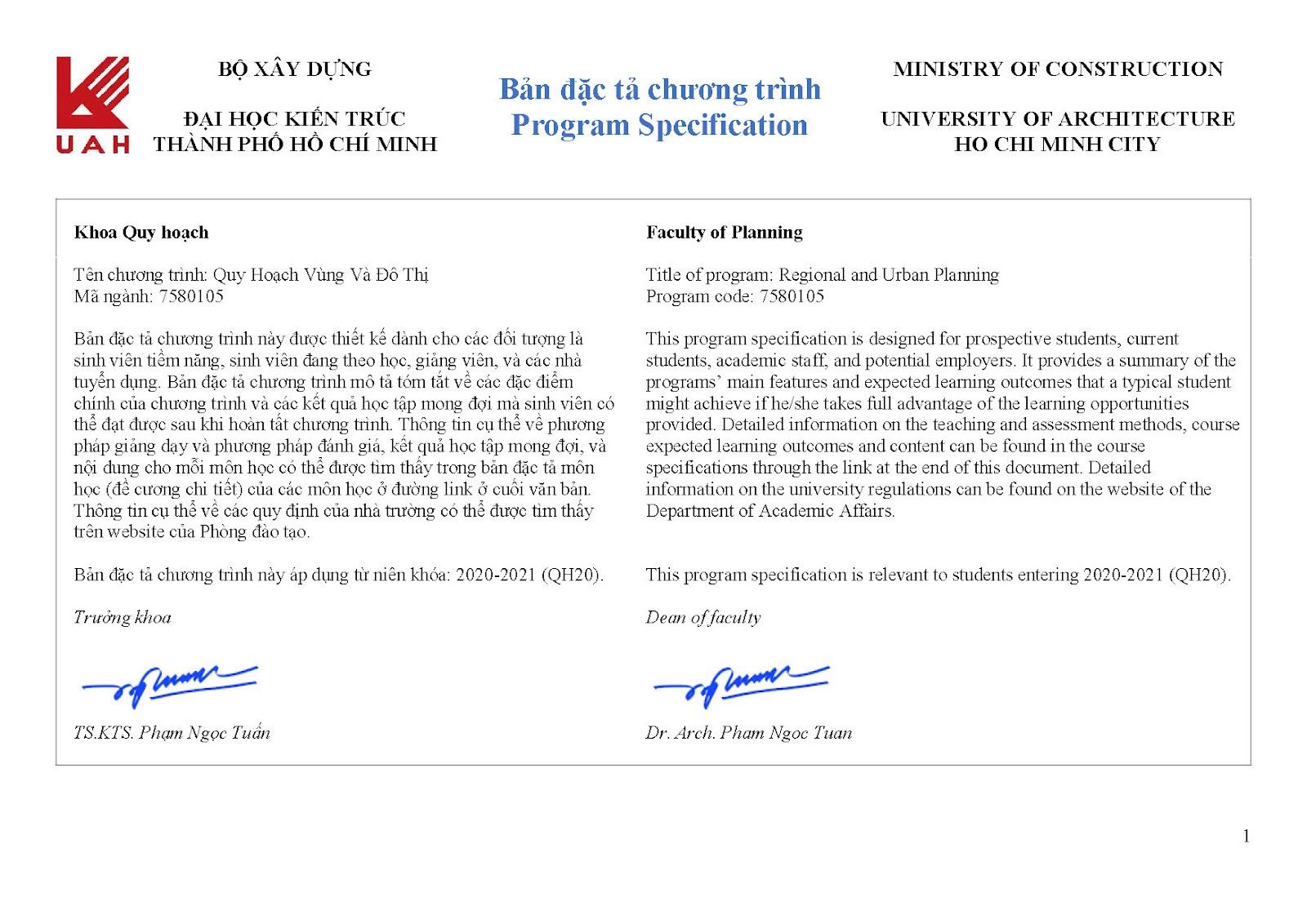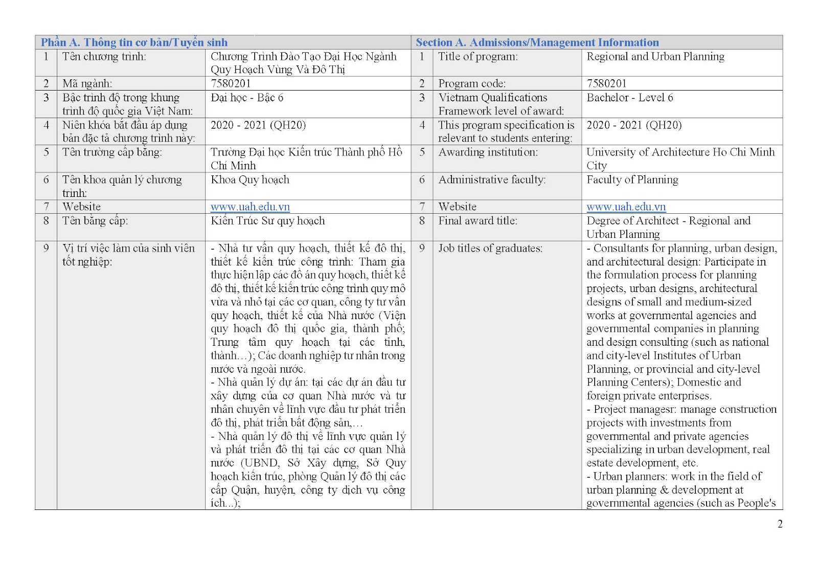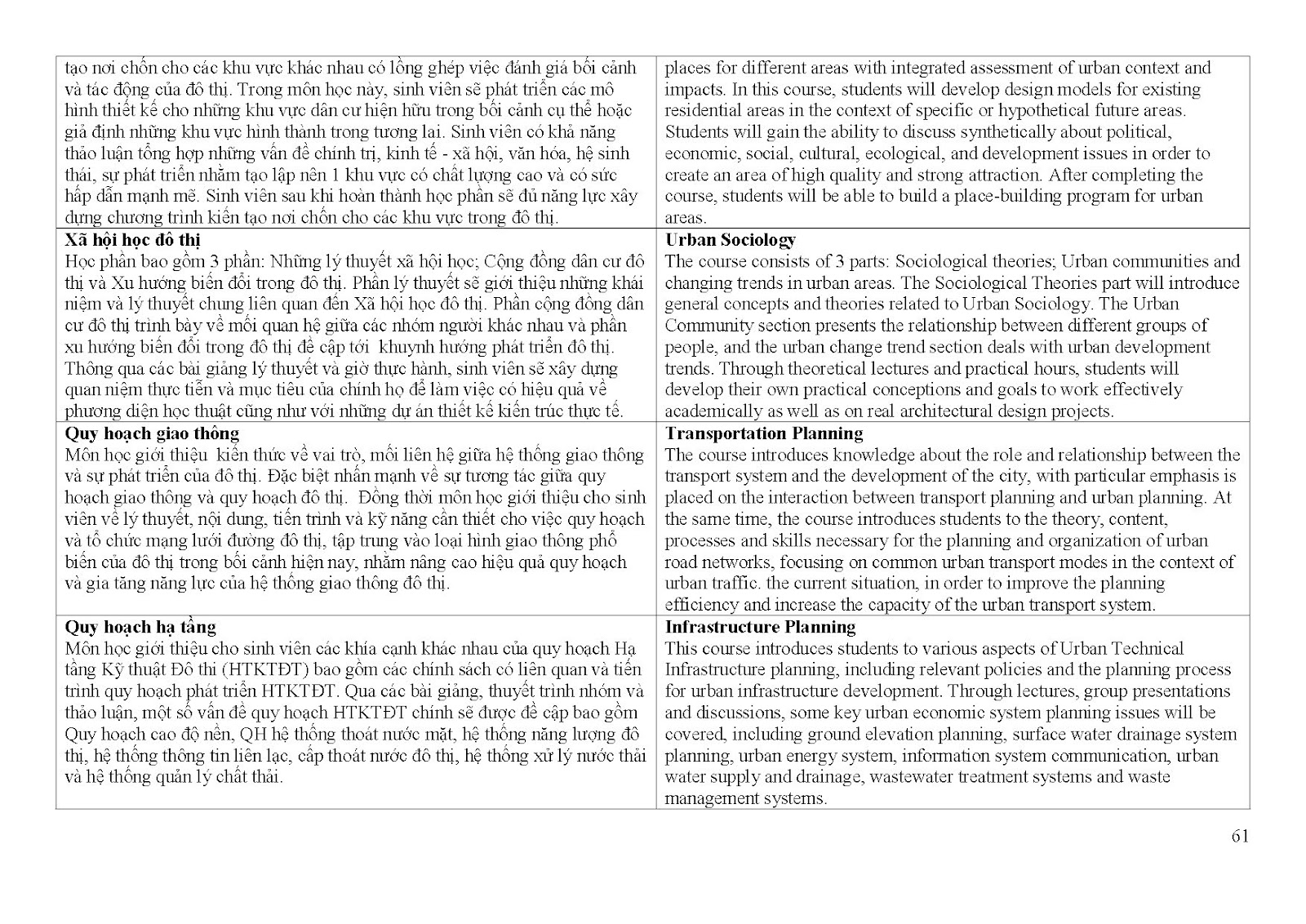 Giới thiệu về chương trình đào tạo ngành Quy hoạch vùng và đô thị