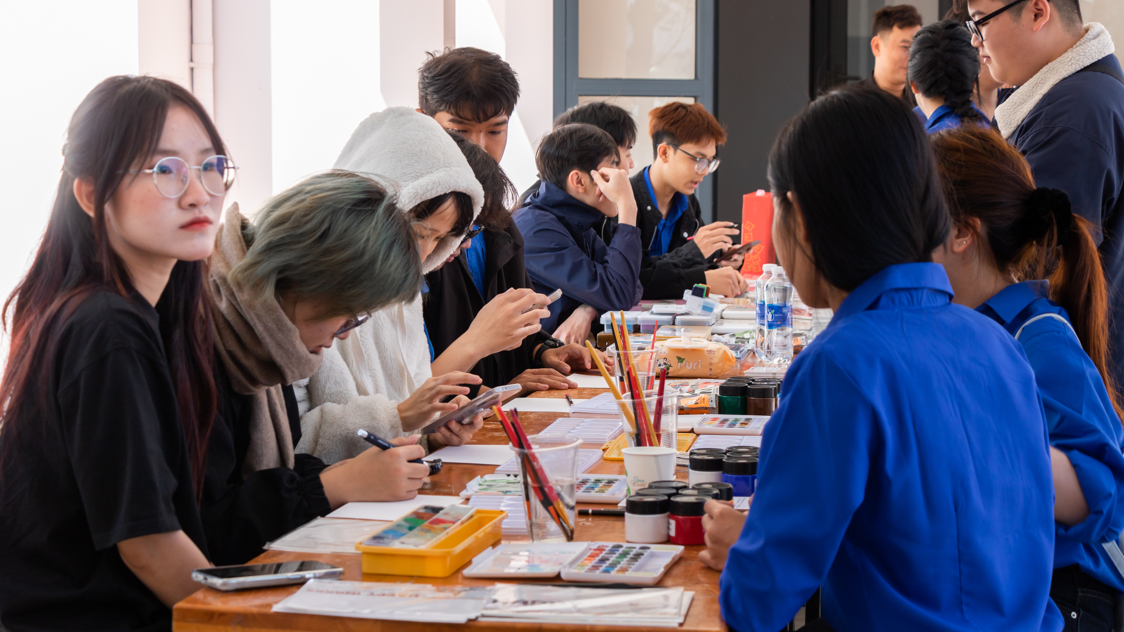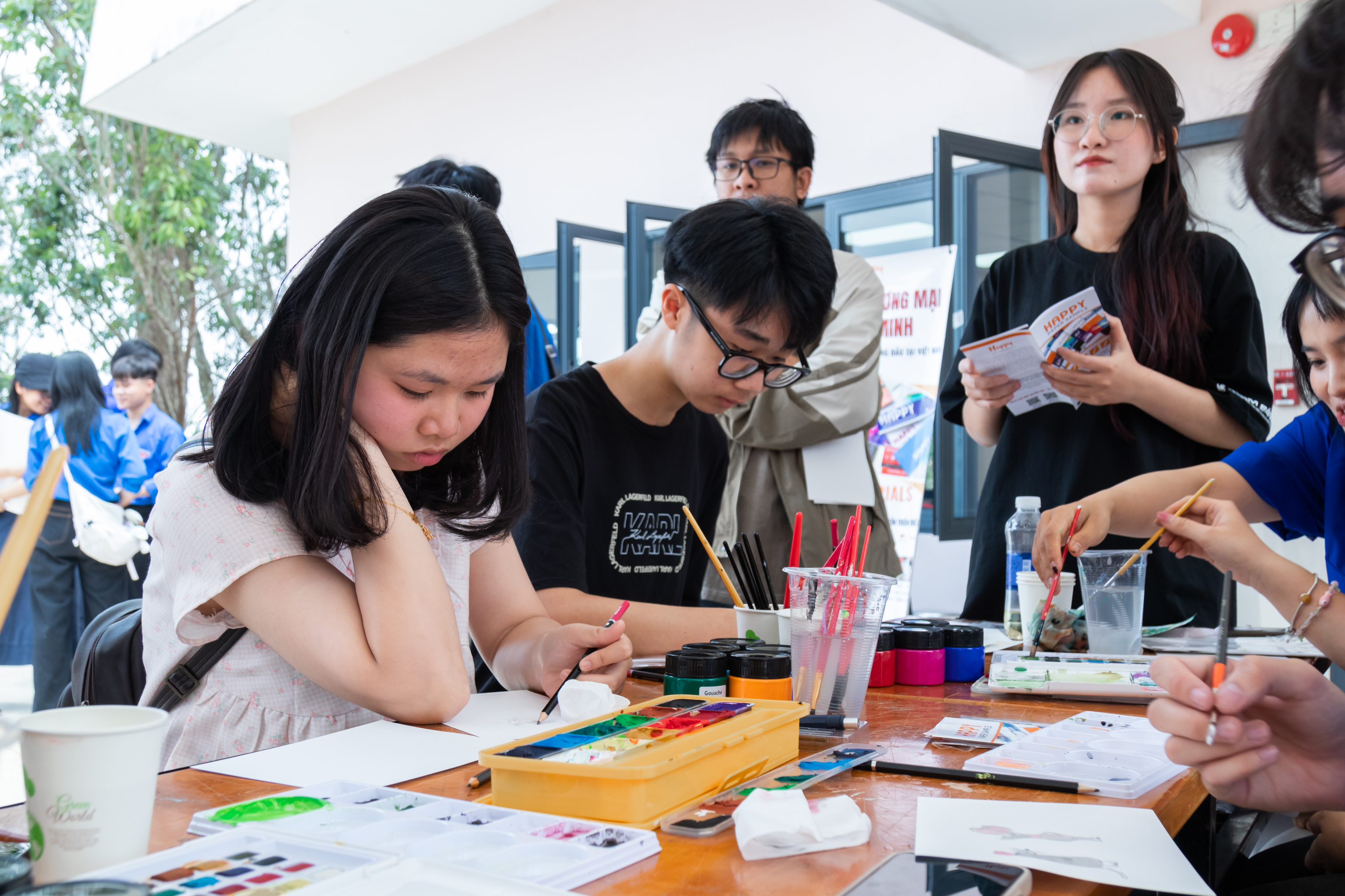 Điểm nhấn ấn tượng của Open Day còn ở không gian thực hành nghệ thuật mở do Công ty TNHH Thương mại Quốc tế Văn Minh đồng hành kiến tạo. Với hệ thống họa cụ được tài trợ đầy đủ, kết hợp cùng sự hướng dẫn trực tiếp từ sinh viên UAH, học sinh có cơ hội trải nghiệm vẽ ký họa, vẽ màu, làm quen với cách thể hiện ý tưởng và khám phá khả năng sáng tạo của bản thân trong môi trường gần gũi, truyền cảm hứng.