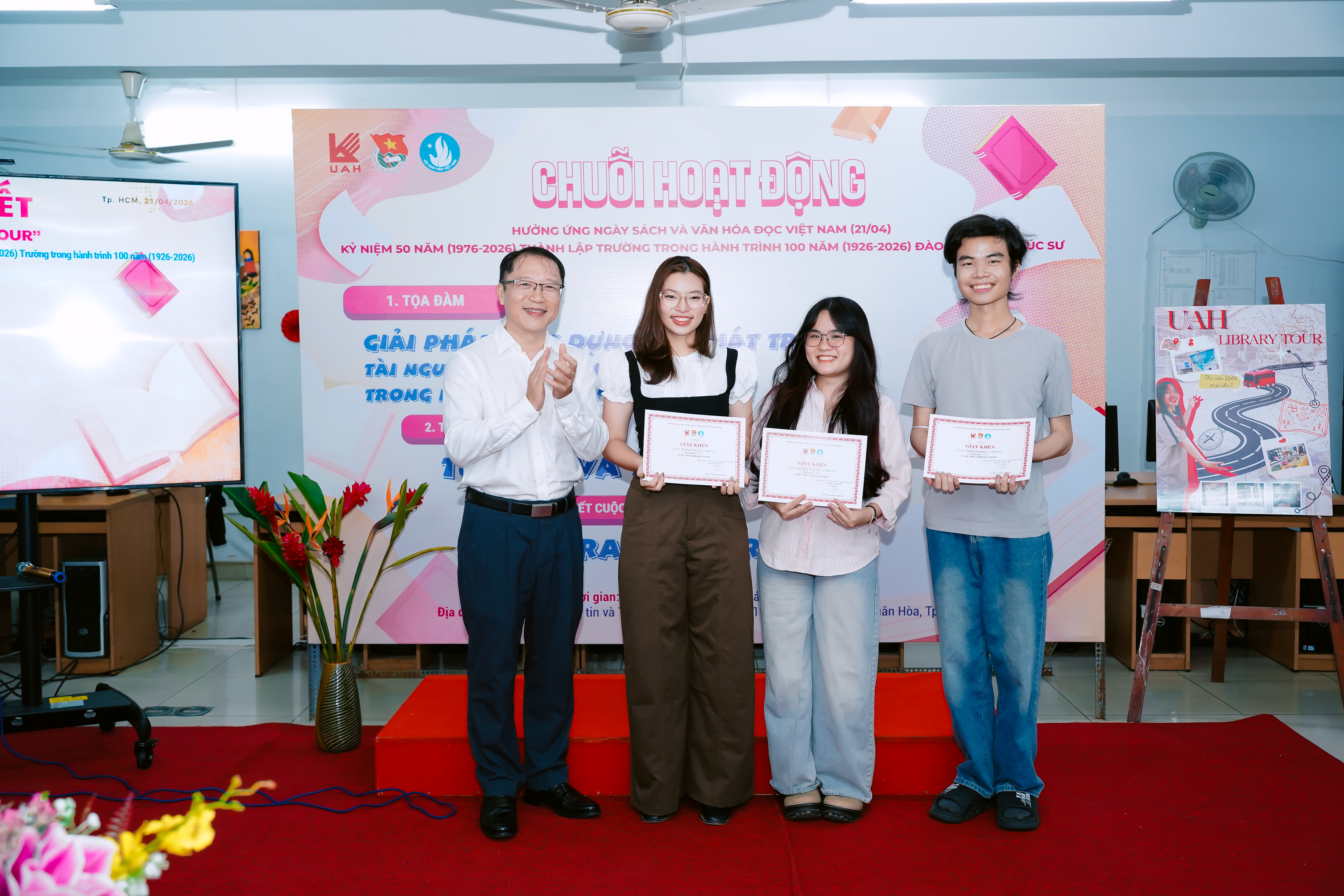 Đặc biệt, vòng chung kết Cuộc thi “Library Tour – Hành trình khám phá Thư viện” đã mang đến không khí sôi nổi với sự tranh tài của Top 10 đội thi xuất sắc. Từ gần 40 tác phẩm dự thi, các sản phẩm năm nay được đánh giá có sự đầu tư công phu, nội dung bám sát chủ đề, truyền tải thông điệp mạnh mẽ về văn hóa đọc và khai thác tài nguyên thư viện.
