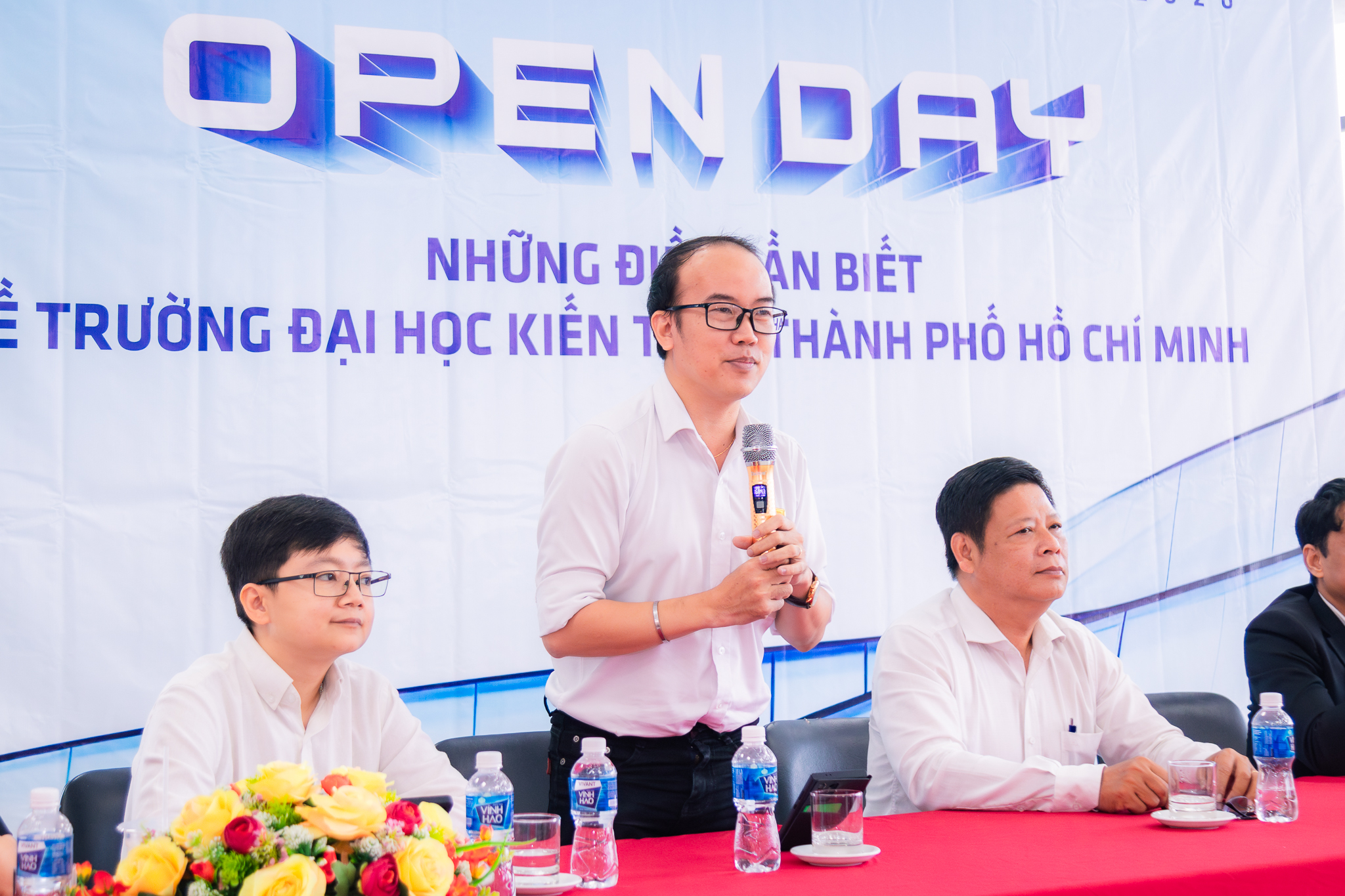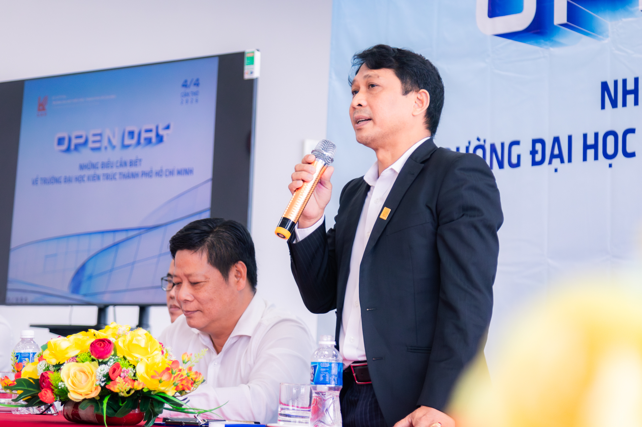 Mở đầu ngày hội, TS. Ngô Trùng Dương - Giám đốc Trung tâm đào tạo cơ sở Cần Thơ nhấn mạnh, các bạn trẻ học tập tại cơ sở Cần Thơ hoàn yên tâm khi được thụ hưởng chất lượng đào tạo chuẩn mực, thống nhất với cơ sở chính dưới sự dẫn dắt của đội ngũ giảng viên chuyên môn cao. Theo thầy Dương, cơ sở Cần Thơ chính là nơi những ý tưởng sơ khai nhất của các bạn trẻ được nuôi dưỡng để trở thành các đồ án thực tiễn, góp phần giải quyết bài toán nóng hổi về quy hoạch, hạ tầng đô thị và biến đổi khí hậu tại chính quê hương miền Tây. Lợi thế địa phương không chỉ giúp các em tiết kiệm chi phí mà còn tạo ra nguồn cảm hứng thiết kế mang đậm hơi thở sông nước nhưng vẫn hiện đại, hội nhập.