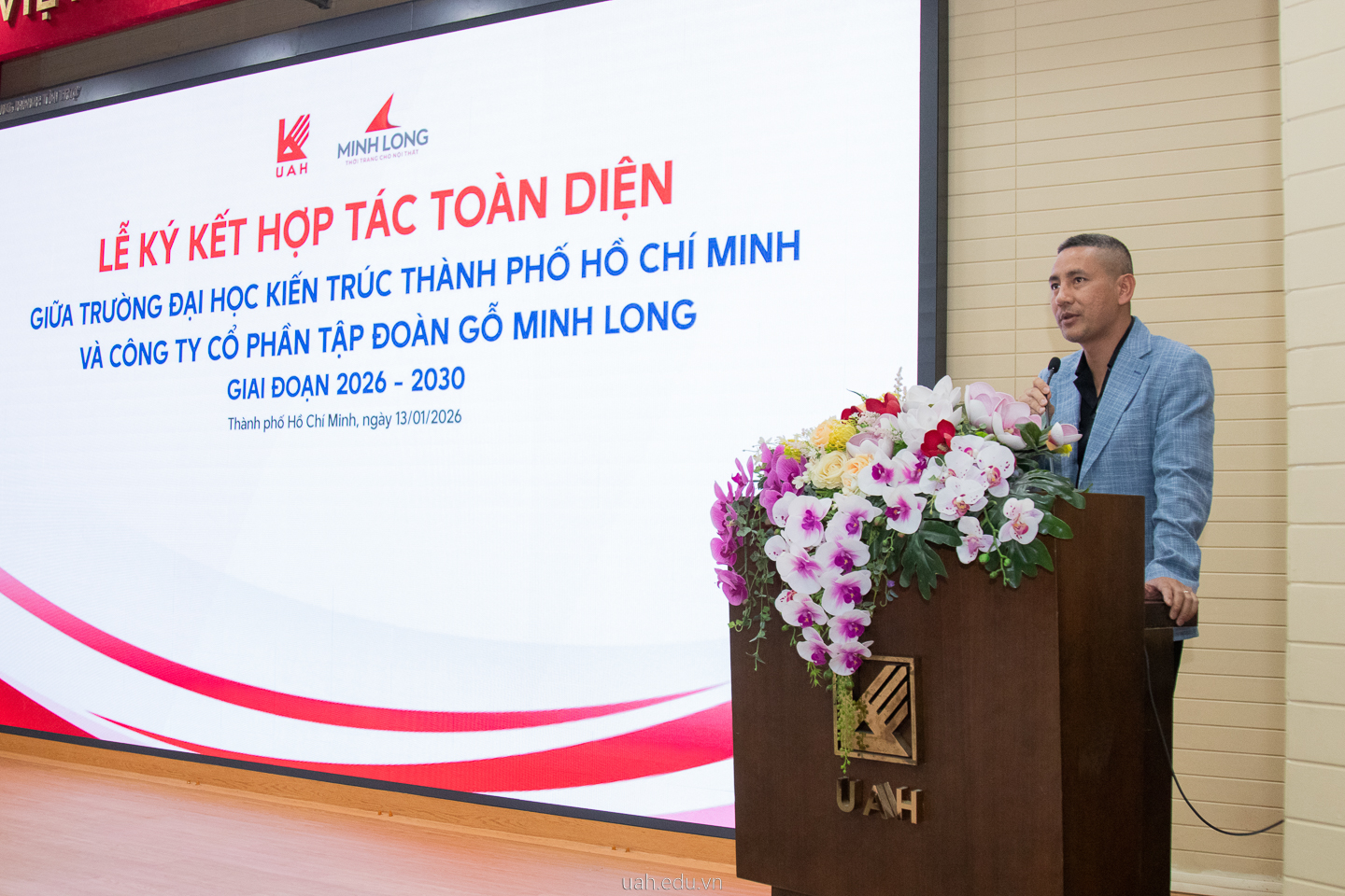 Khi kiến trúc và nội thất Việt Nam đứng trước “cơn bão” xu hướng thế giới, điều quan trọng không phải là chúng ta bắt kịp nhanh đến đâu, mà là chắt lọc và sáng tạo lại như thế nào để giữ gìn giá trị bản nguyên. Xuất phát từ tinh thần đó, chiều 13/01/2026, Trường Đại học Kiến trúc Thành phố Hồ Chí Minh (UAH) đã phối hợp cùng Công ty Cổ phần Tập đoàn Gỗ Minh Long tổ chức chương trình gồm Lễ ký kết hợp tác toàn diện giữa hai đơn vị, đồng thời tổ chức Talkshow Trend 26+ với chủ đề “Bản địa hóa xu hướng: Sáng tạo để tiếp biến”, mở ra không gian đối thoại giữa học thuật và thực tiễn sáng tạo.