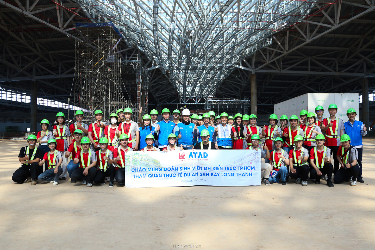 Sinh viên UAH tham quan Sân bay Long Thành (Đồng Nai) trong khuôn khổ hợp tác toàn diện giữa Nhà trường cùng Công ty Cổ phần Kết cấu Thép ATAD