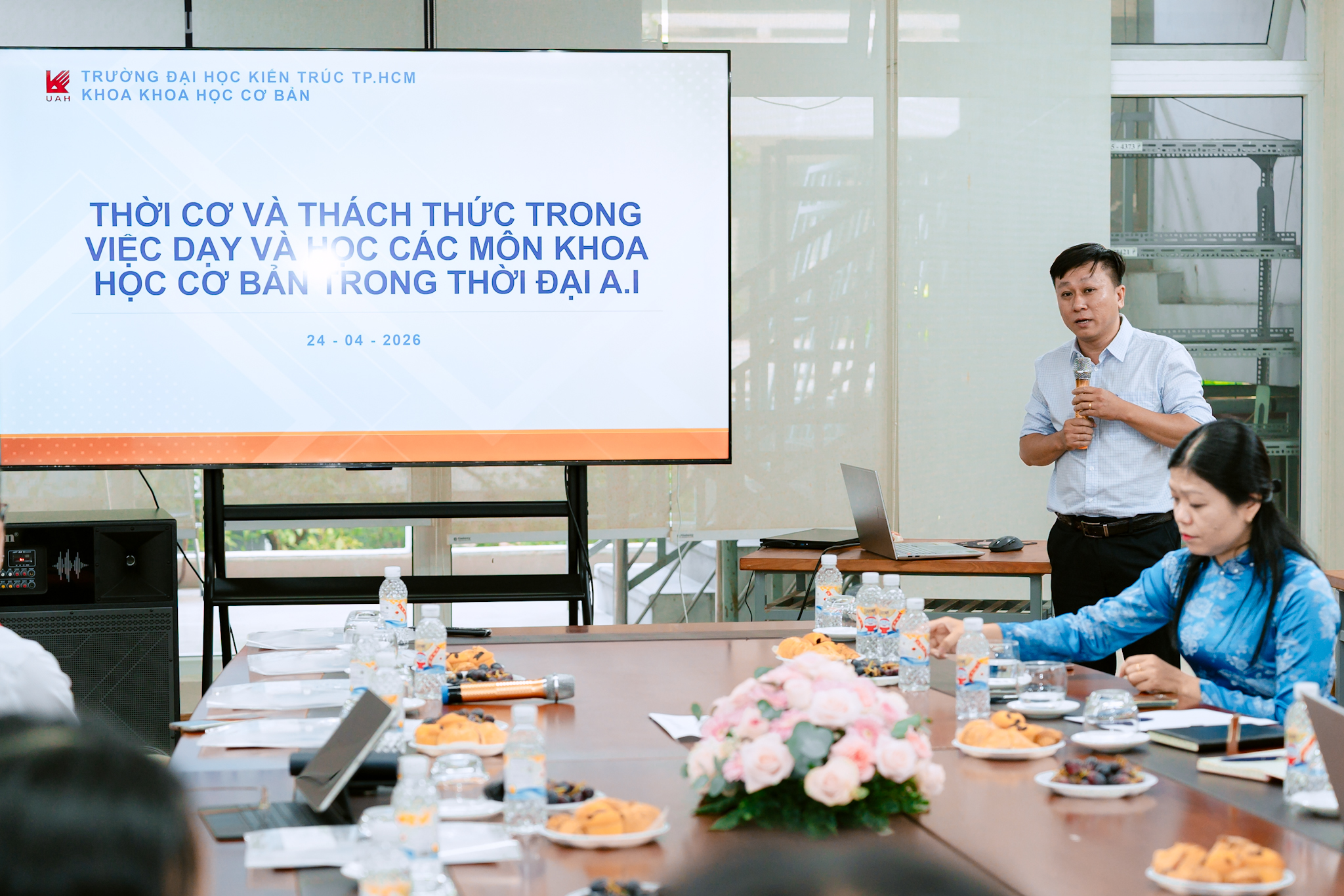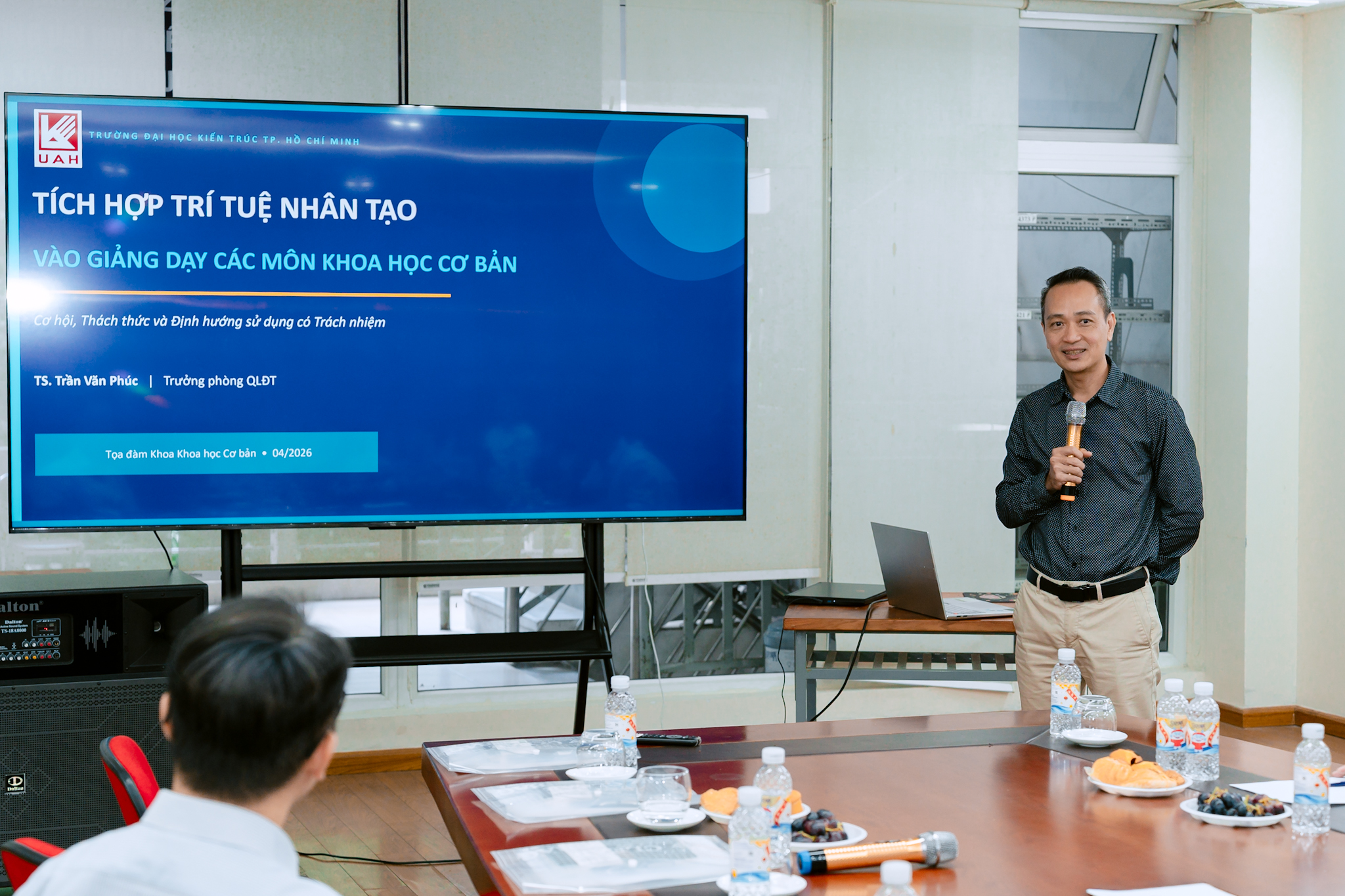 Tiếp nối quan điểm này, TS.KTS. Trương Thanh Hải - Phó Hiệu trưởng Nhà trường cho rằng sự phát triển nhanh chóng của AI đặt ra yêu cầu nhìn nhận lại vai trò của khối khoa học cơ bản trong toàn bộ hệ thống đào tạo. Theo thầy, trong một tương lai rất gần, khi AI có thể hỗ trợ giải quyết nhiều bài toán chuyên môn một cách nhanh chóng và hiệu quả, nếu không thay đổi cách tiếp cận, giáo dục sẽ rơi vào thế bị động. “Có lẽ chúng ta phải thay đổi cách suy nghĩ về vai trò của khoa học cơ bản. Không chỉ dừng lại ở việc cung cấp kiến thức nền, mà cần tham gia sâu hơn vào nghiên cứu khoa học và hỗ trợ các ngành đào tạo khác”, Thầy nhấn mạnh. Thực tế cho thấy, các môn như Toán, Vật lý hay các lĩnh vực khoa học nền tảng không hề mất đi vai trò trong thời đại AI, mà ngược lại, càng trở nên quan trọng khi giúp người học hiểu bản chất của các mô hình và công cụ công nghệ. Đây chính là cơ sở để sinh viên không bị phụ thuộc hoàn toàn vào AI, đồng thời có thể khai thác công nghệ một cách hiệu quả hơn.