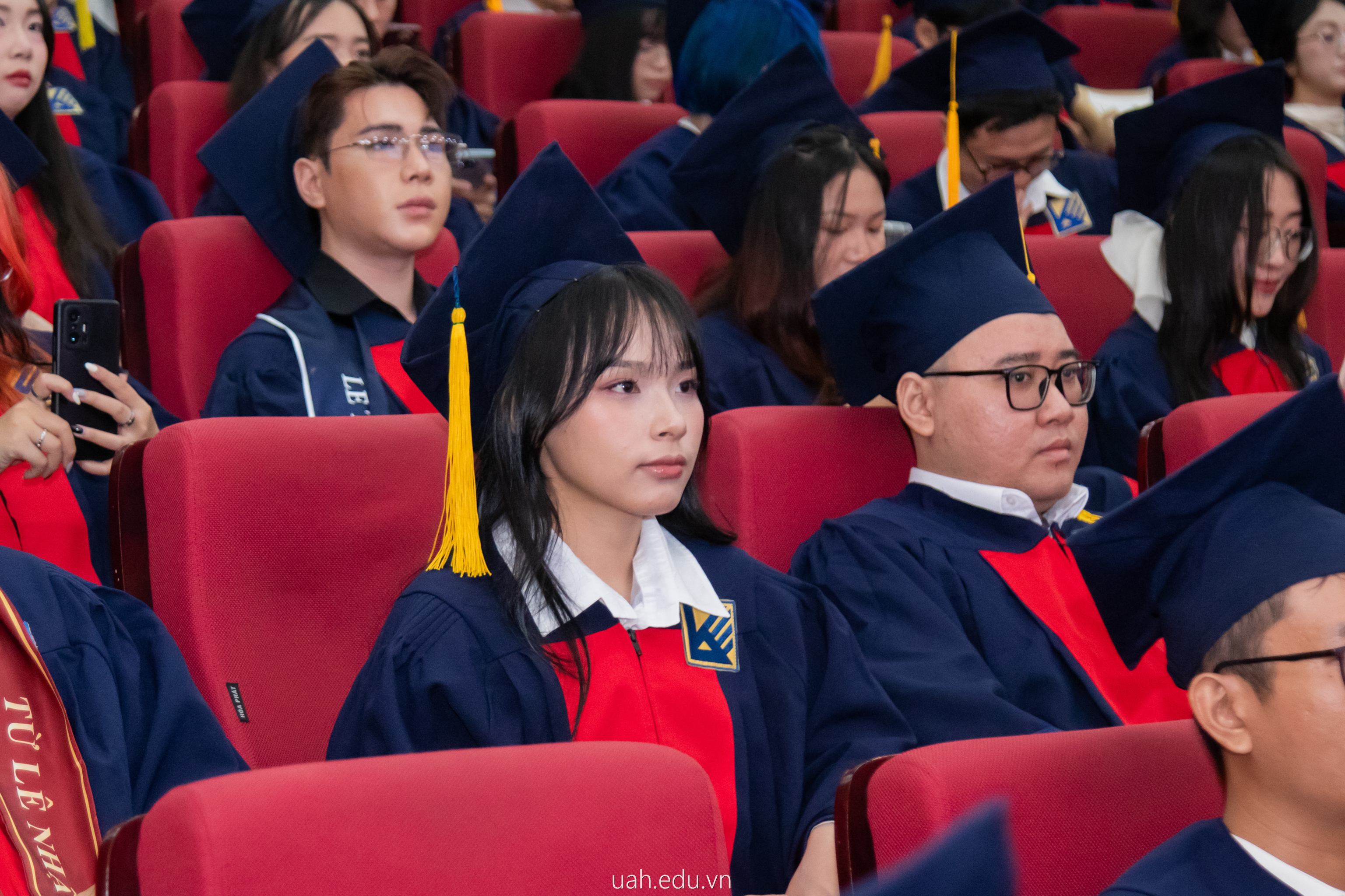 Đại diện sinh viên tốt nghiệp trong ngày trọng đại, tân cử nhân khoa Mỹ thuật Công nghiệp Thái Lê Thương (MT21ĐH/A1) bày tỏ: “Đối với riêng em, UAH không chỉ là nơi học tập, mà còn là nơi khởi nguồn của đam mê và ước mơ nghệ thuật. Những giá trị mà Nhà trường trao gửi sẽ luôn là hành trang đồng hành cùng chúng em trên chặng đường phía trước”. Thay mặt sinh viên tốt nghiệp, Thái Lê Thương gửi lời cảm ơn đến giảng viên, những người đã đồng hành qua từng bài giảng, từng đồ án và tri ân gia đình, điểm tựa để sinh viên vững tâm học tập và trưởng thành.