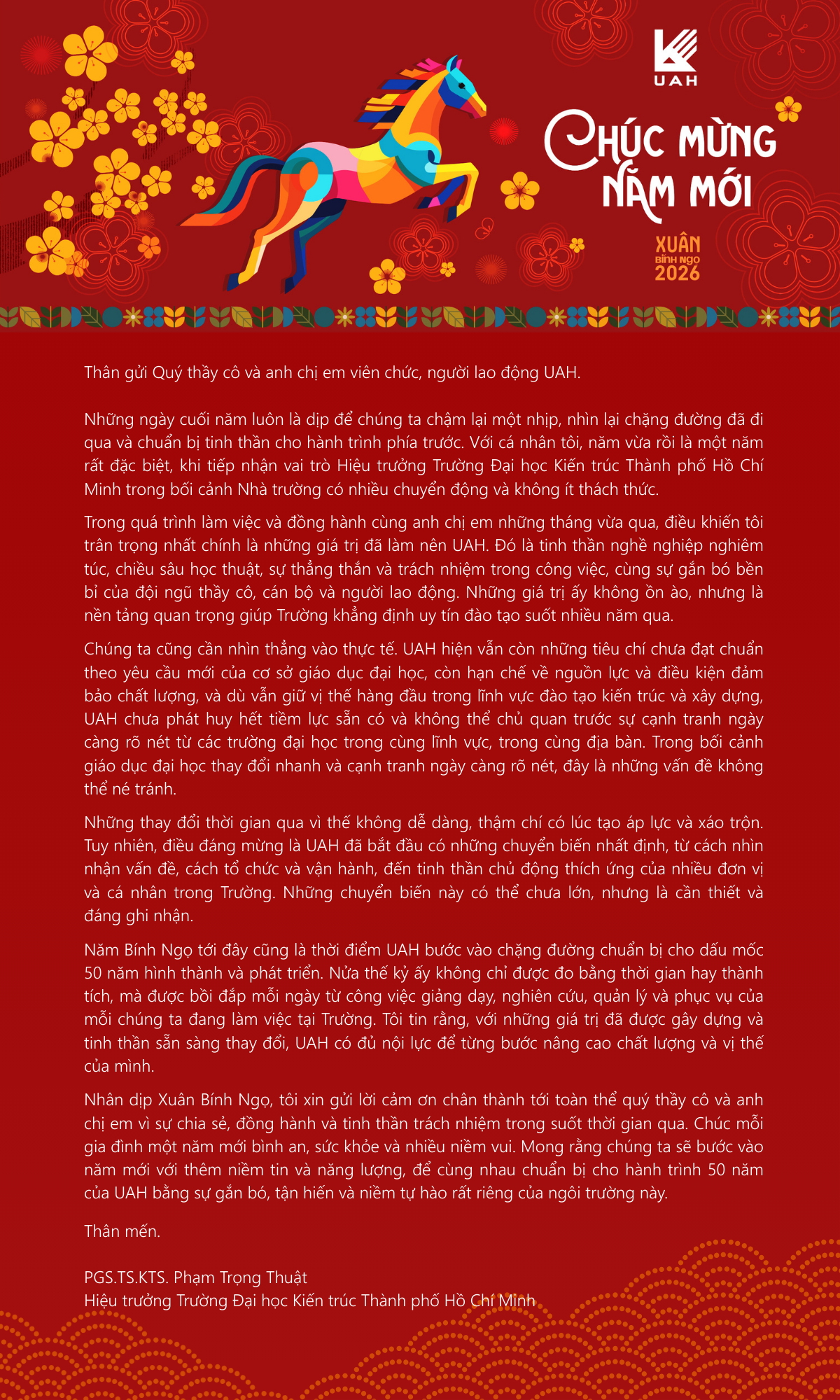 Thư chúc Tết Bính Ngọ 2026 của thầy Hiệu trưởng