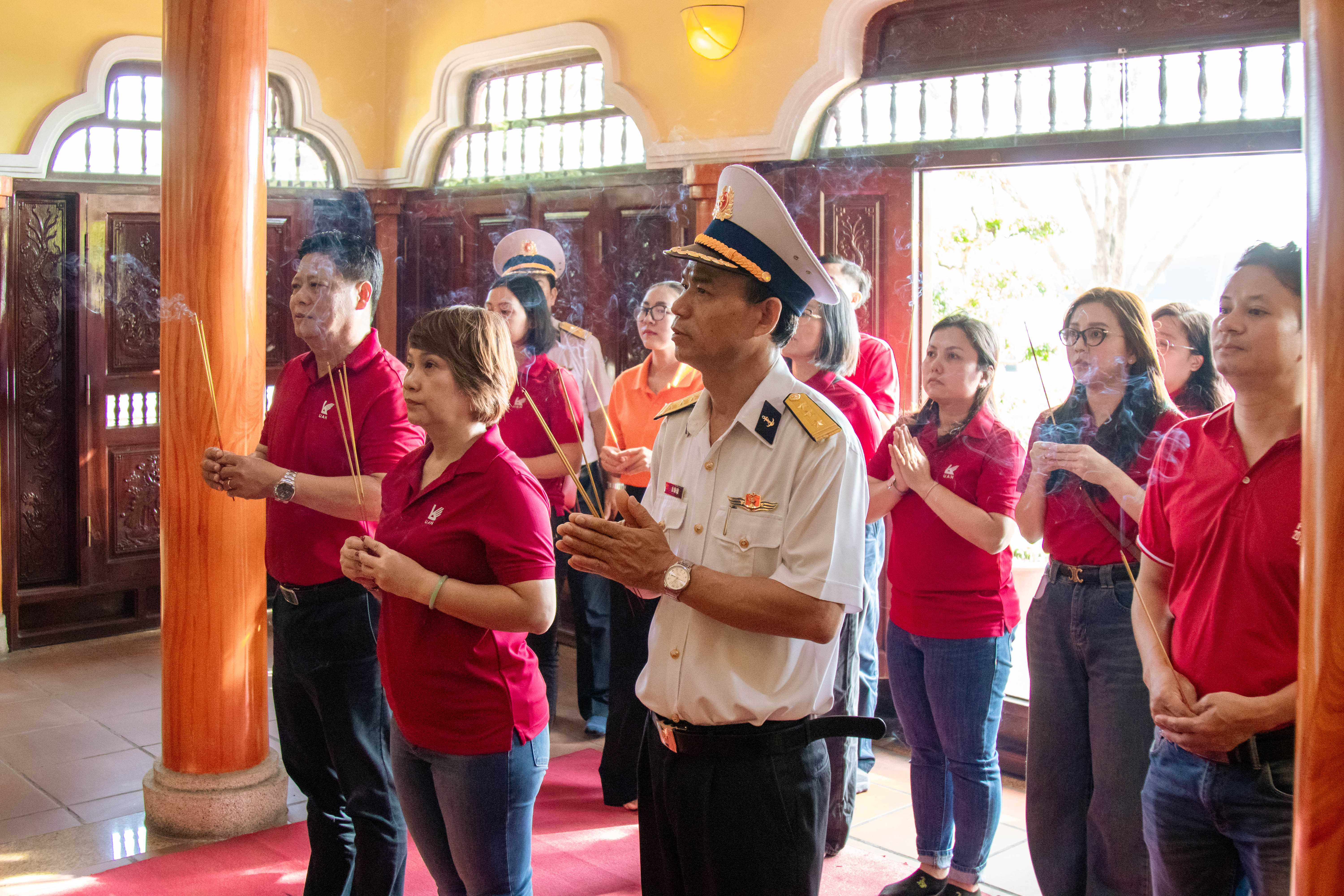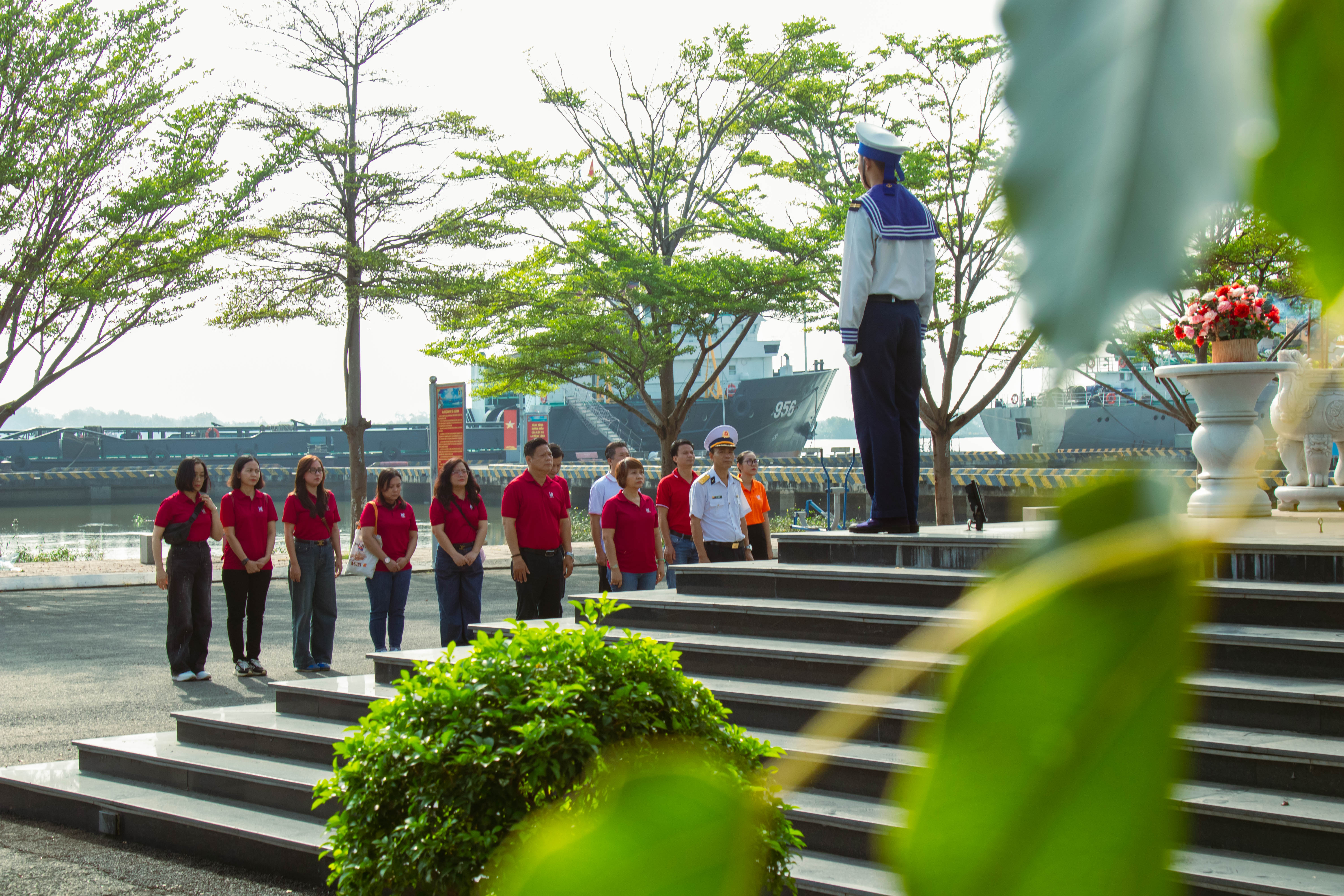Tại bến cảng thiêng liêng, nơi từng là xuất phát điểm của những con tàu không số làm nên huyền thoại Đường Hồ Chí Minh trên biển, tập thể chi bộ đã dâng hương tại Đài tưởng niệm các Anh hùng và Đền thờ Liệt sĩ Đoàn tàu Không số trong khuôn viên Lữ đoàn Hải quân 125.